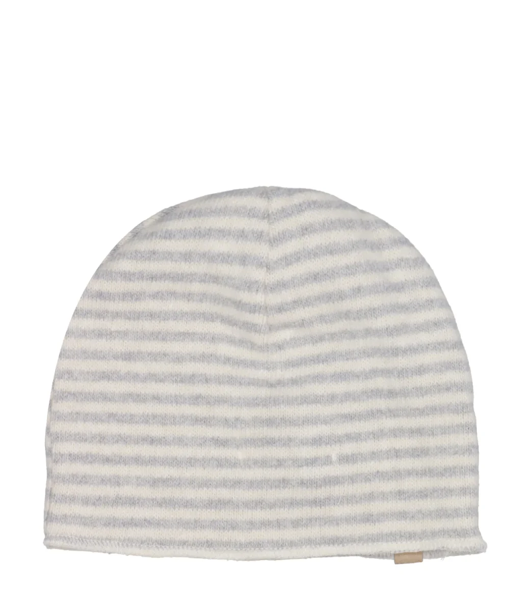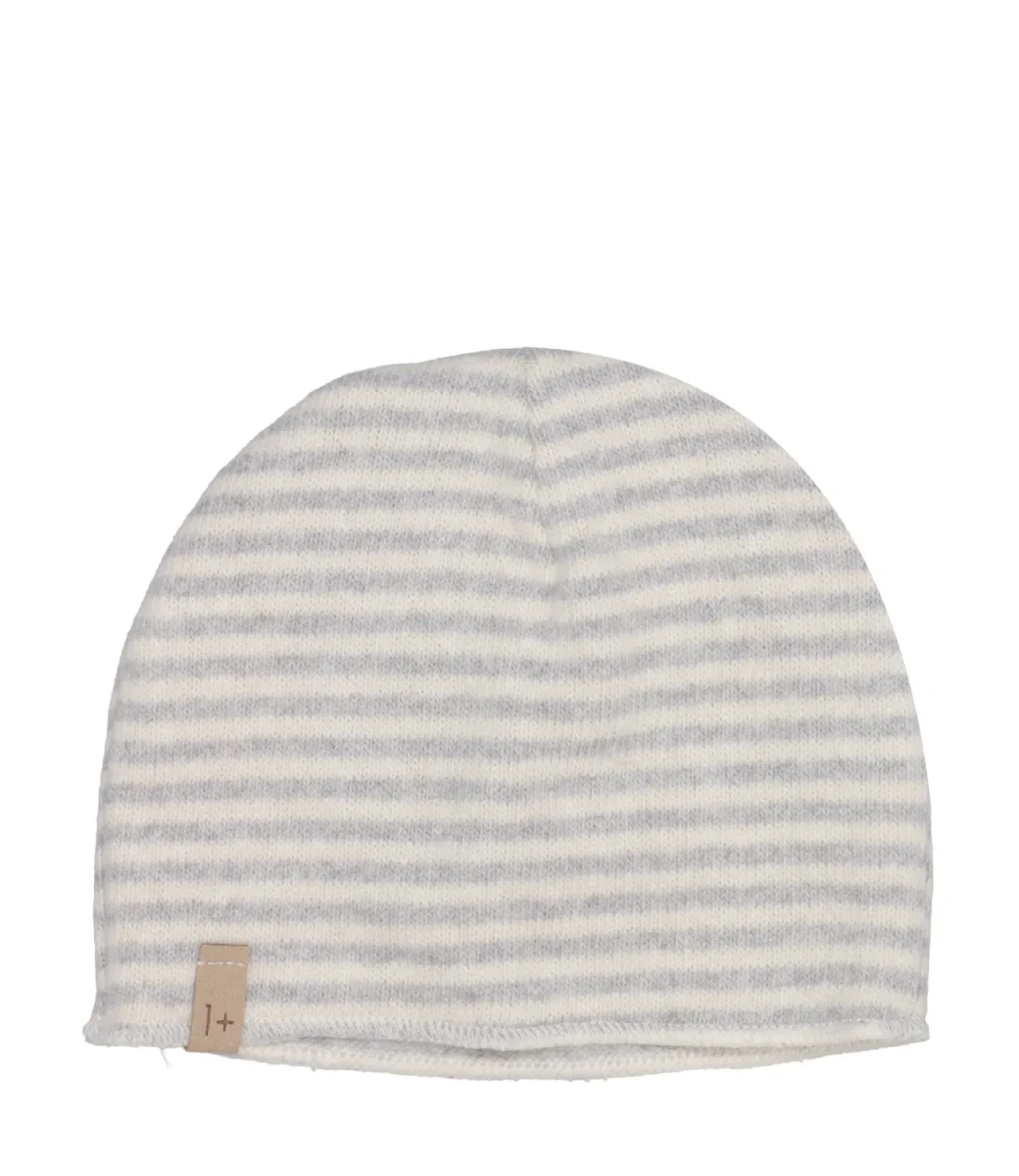 Cuffia 1+ in the family in pile misto cotone, motivo a righe orizzontali, logo applicato sul bordo.