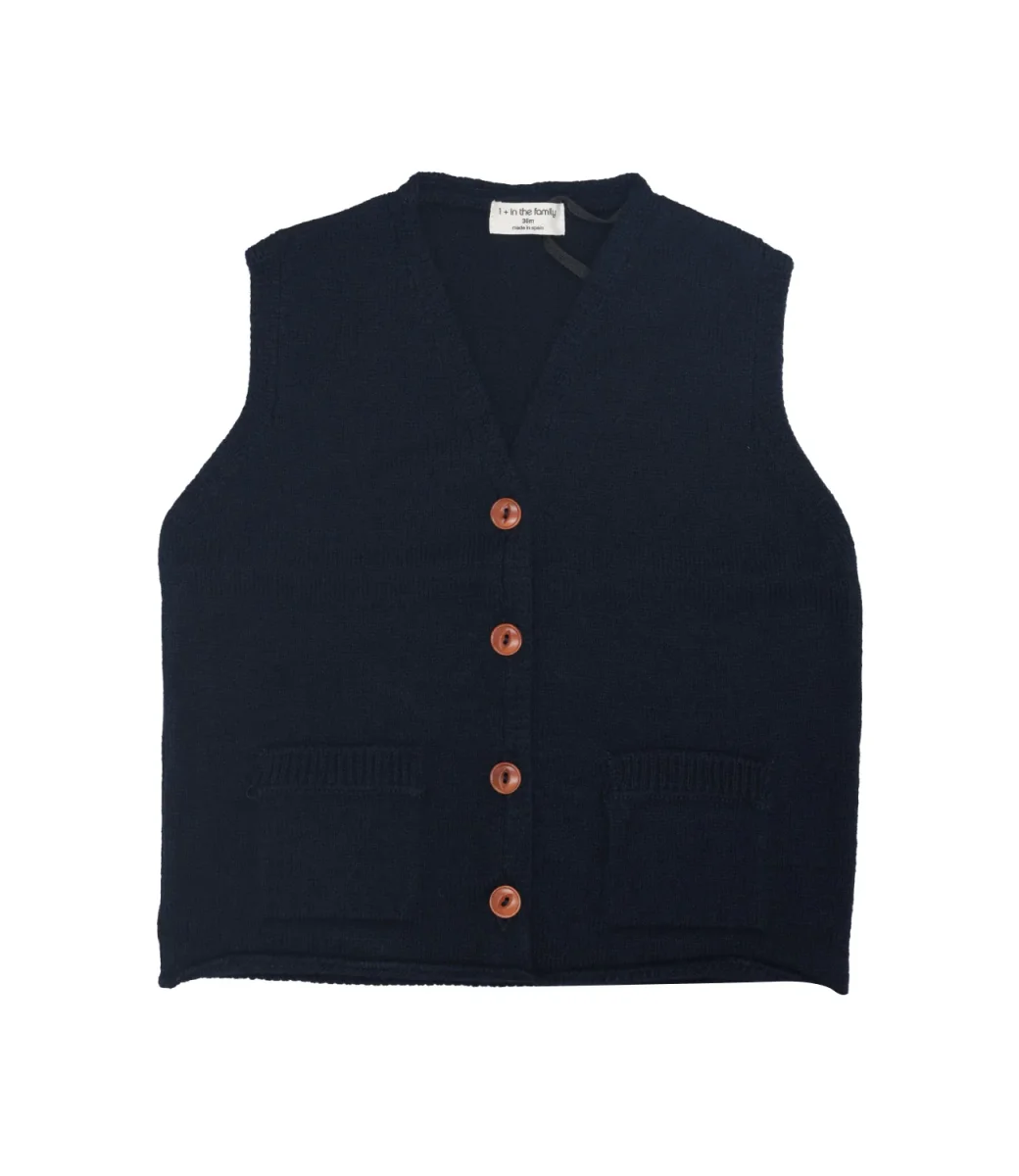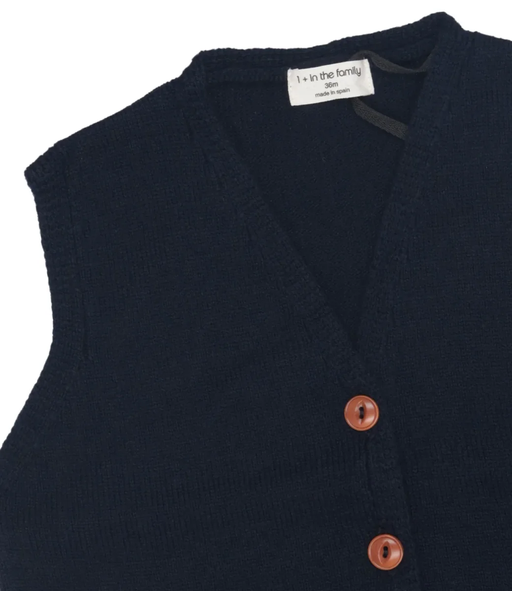 Gilet 1+ in the family Thomas in tessuto in misto cotone con motivo tramato, scollo a V, senza maniche, fondo dritto, logo applicato sul profilo. Capo da indossare stratificato in abbinamento con una t-shirt o camicia per un look casual o da cerimonia.