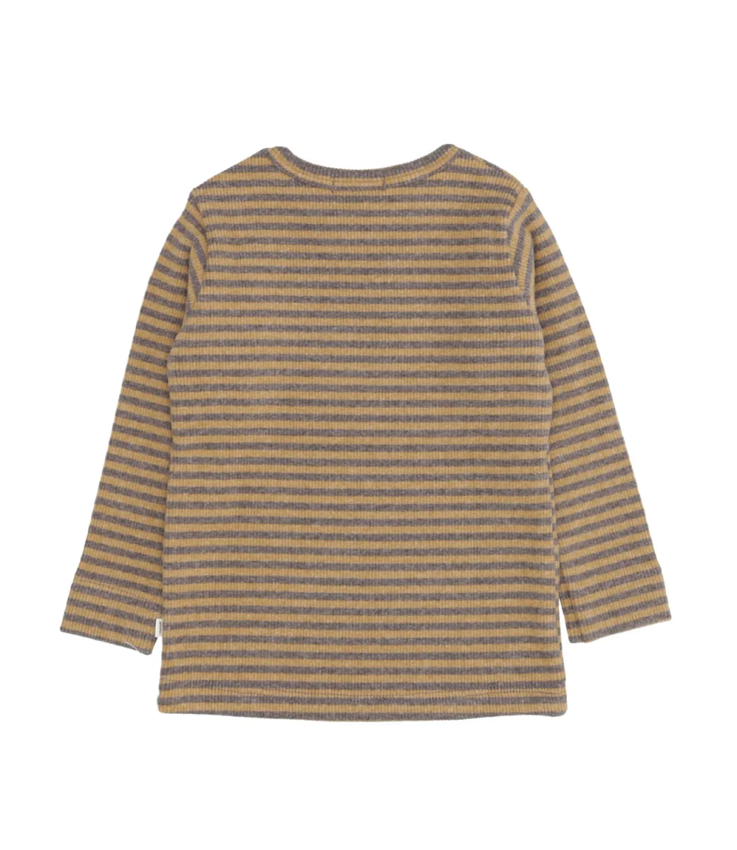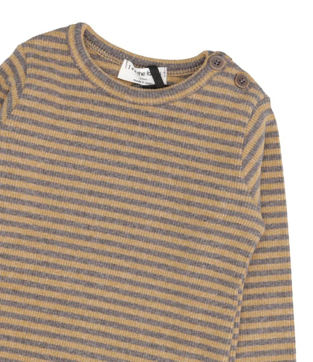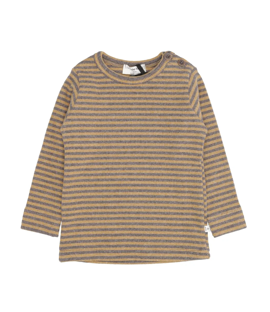 Maglia 1+ in the family in misto cotone con motivo a costine, girocollo, chiusura con bottoni sulla spalla sinistra, maniche lunghe, fondo dritto.