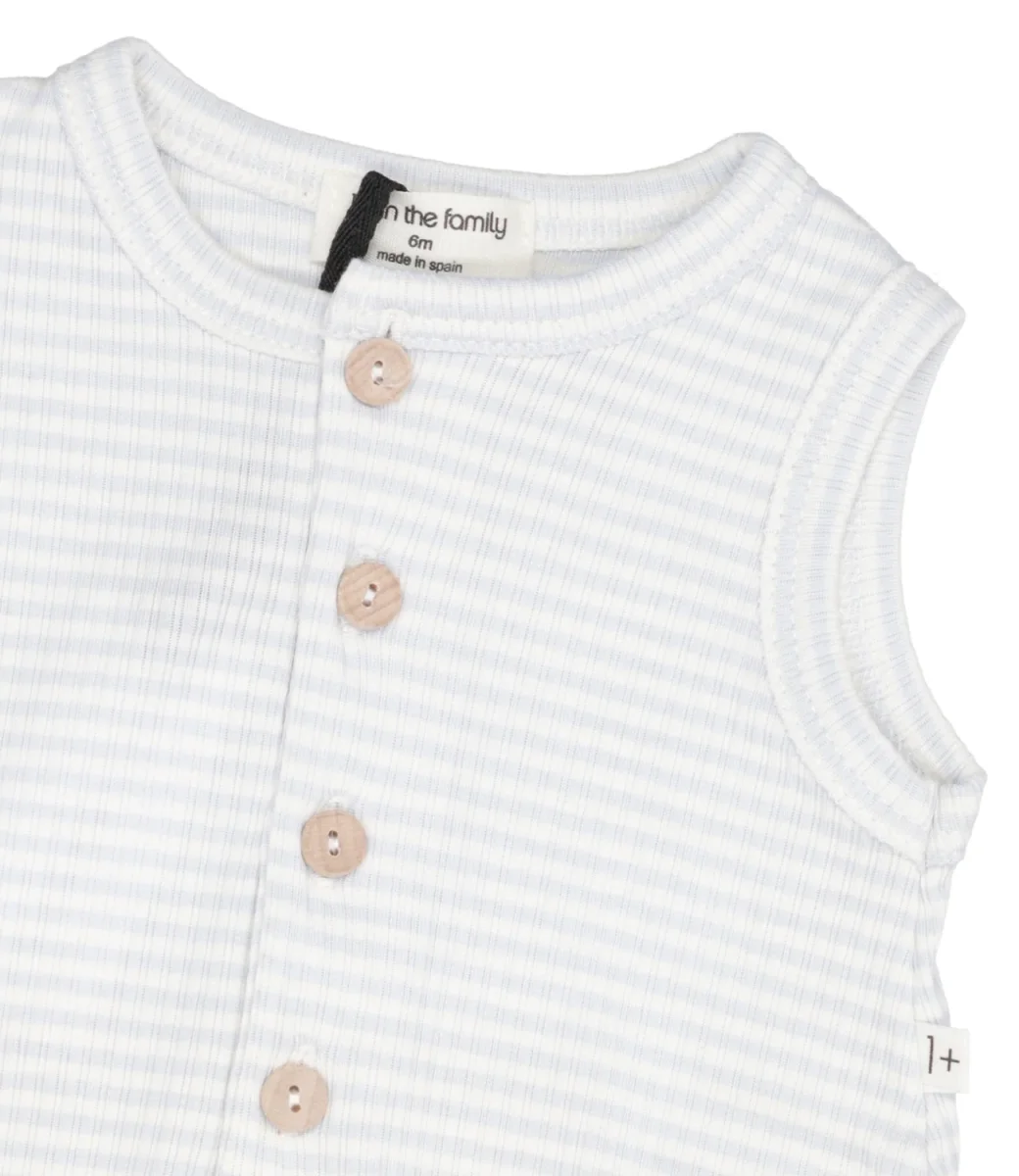 Pagliaccetto 1+ in the Family realizzato in ricercato modal e cotone biologico qualità artigianale scelta per vestire i più piccoli con dettagli riconoscibili.