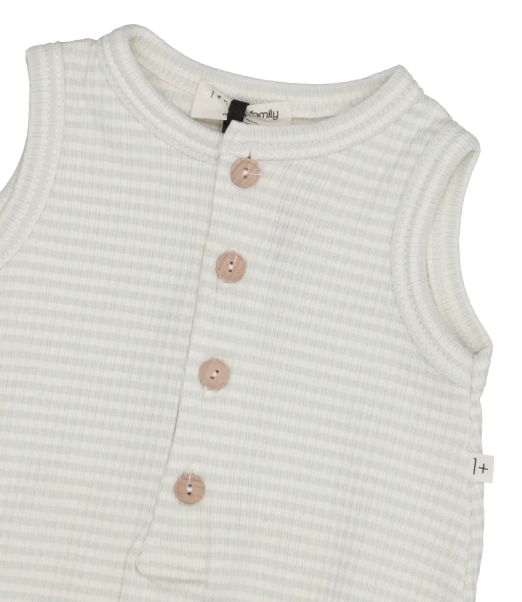 Pagliaccetto 1+ in the Family realizzato in ricercato modal e cotone biologico qualità artigianale scelta per vestire i più piccoli con dettagli riconoscibili.