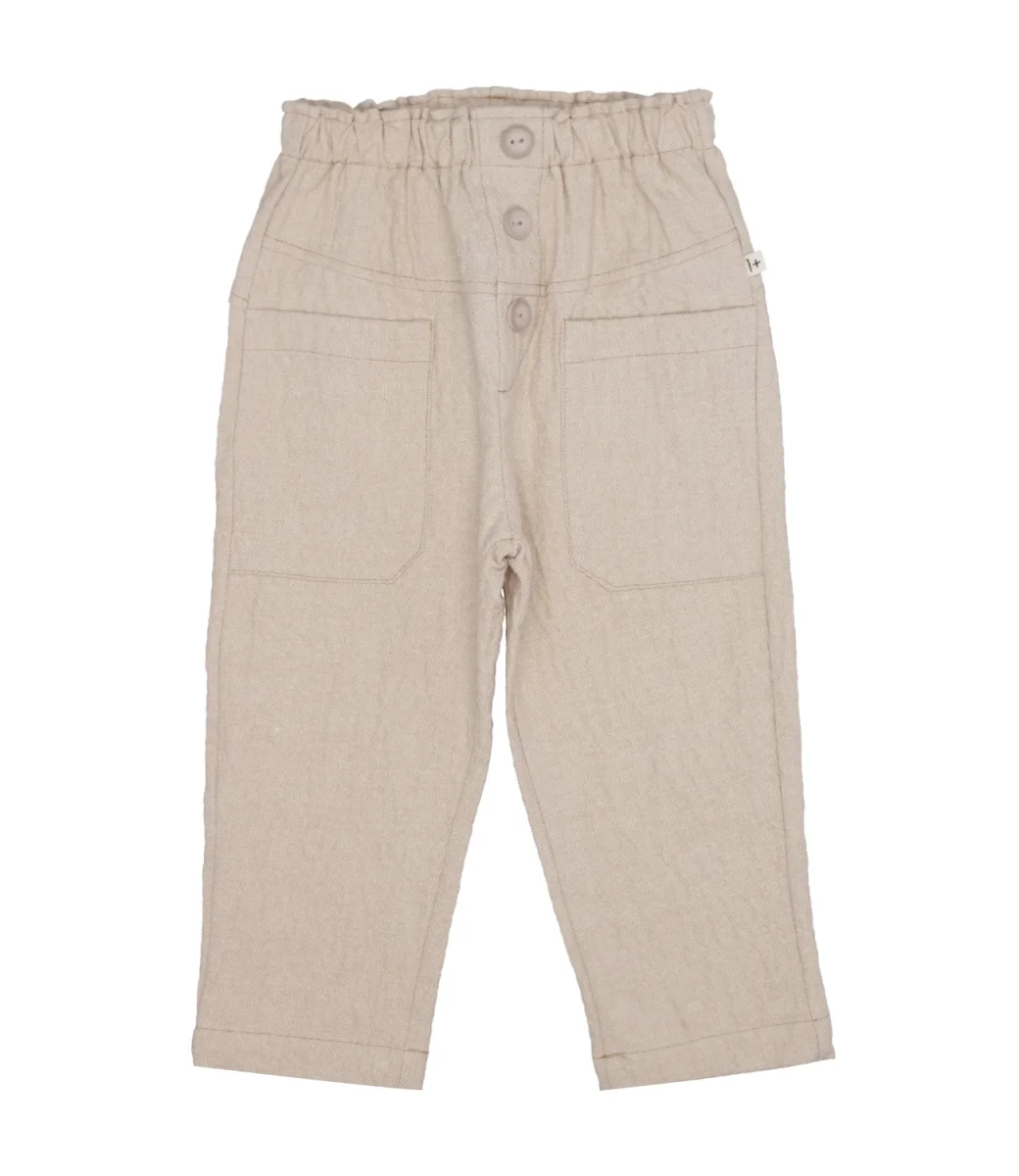 Pantalone 1+ in the Family in cotone, vita elasticizzata, bottoni sul davanti, tasche applicate, logo a bandierina cucito sul bordo al lato sinistro.
