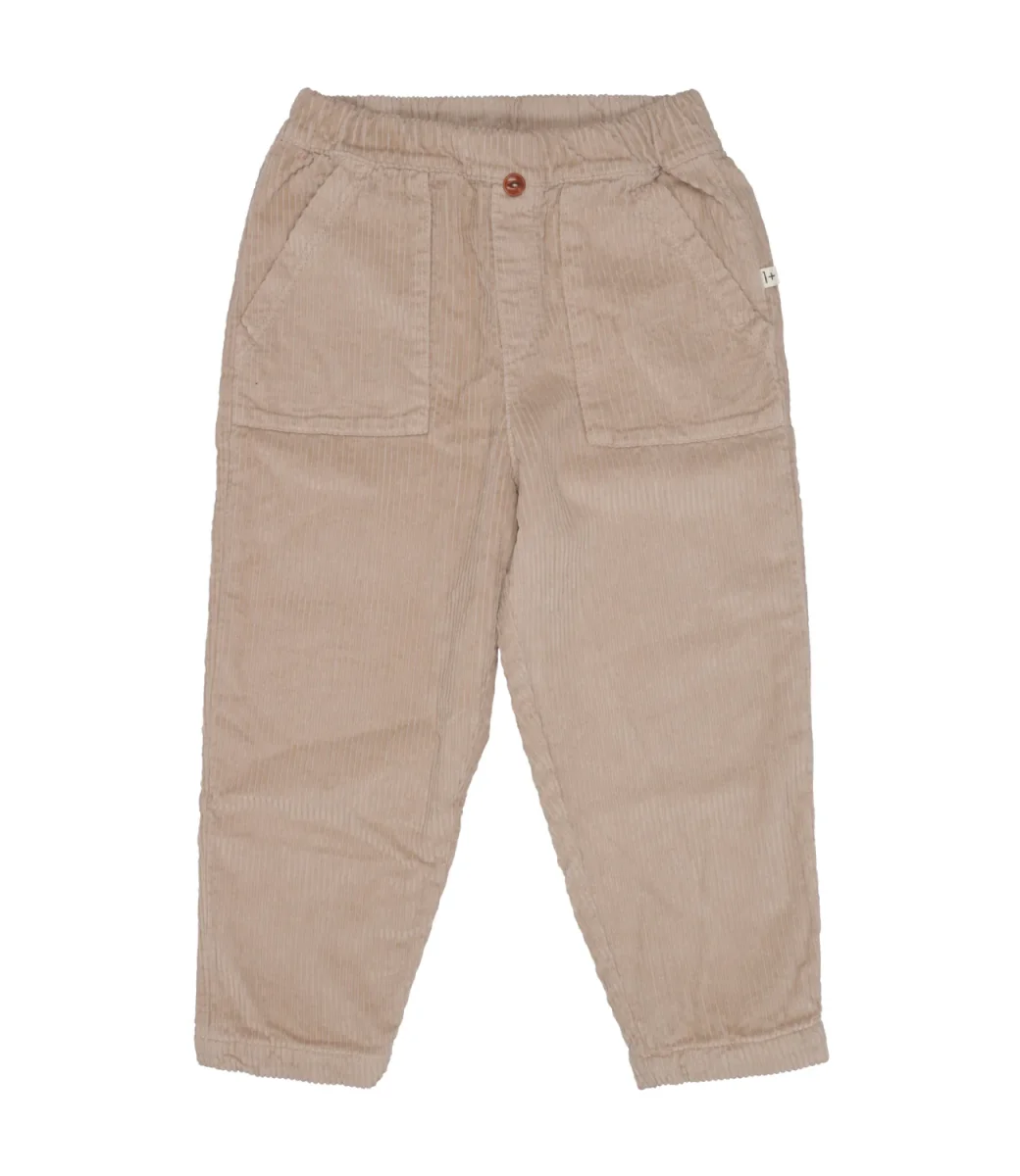 Pantalone 1+ in the family Louis in velluto con motivo a coste. Vita elasticizzata, tasche applicate sui fianchi, fondo con polsini elasticizzato.