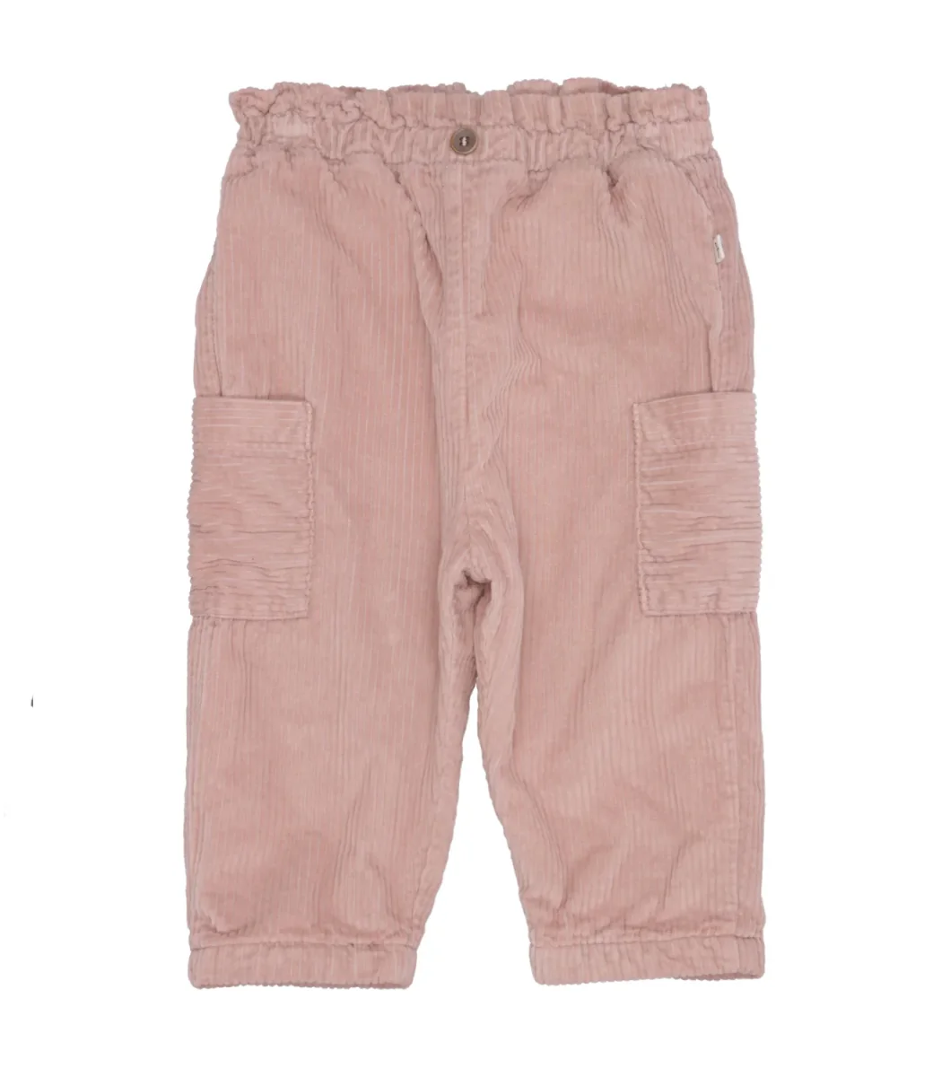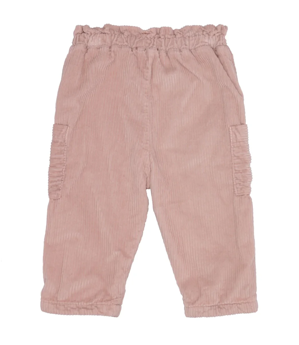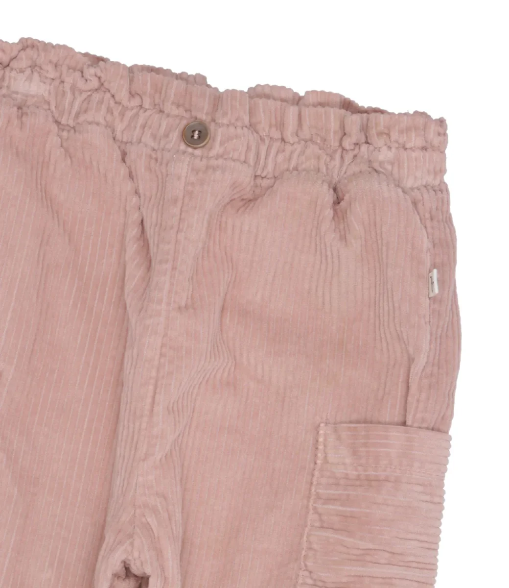 Pantalone 1+ in the family in velluto di cotone a coste, vita elasticizzata con arriccio e bottone applicato sul davanti,tasche applicate sul laterale, fondo con polsini elasticizzato.