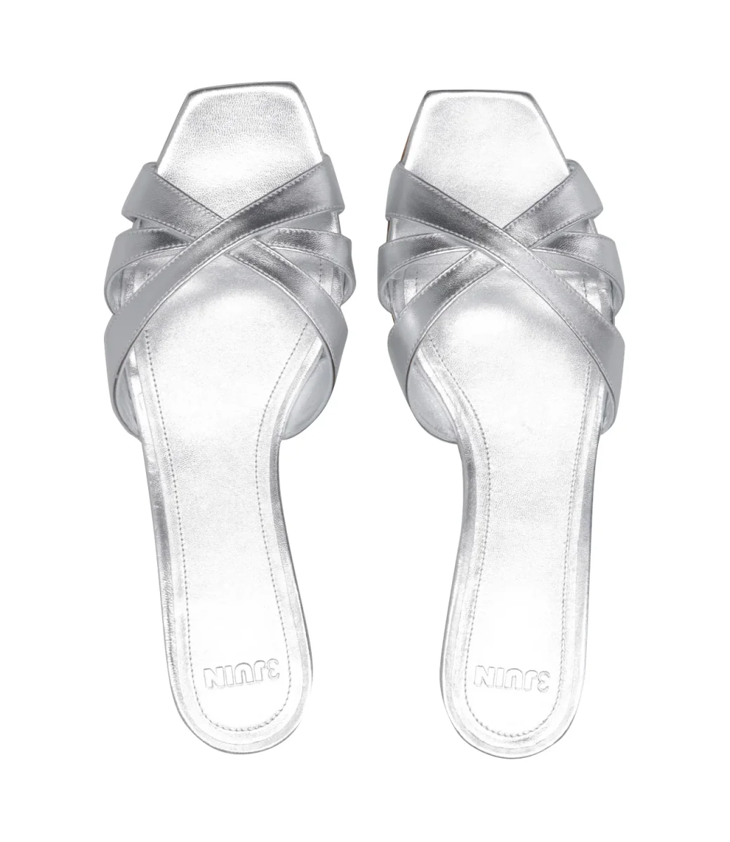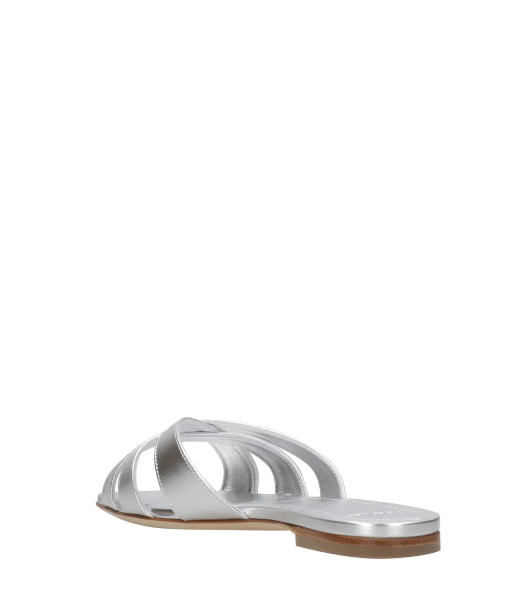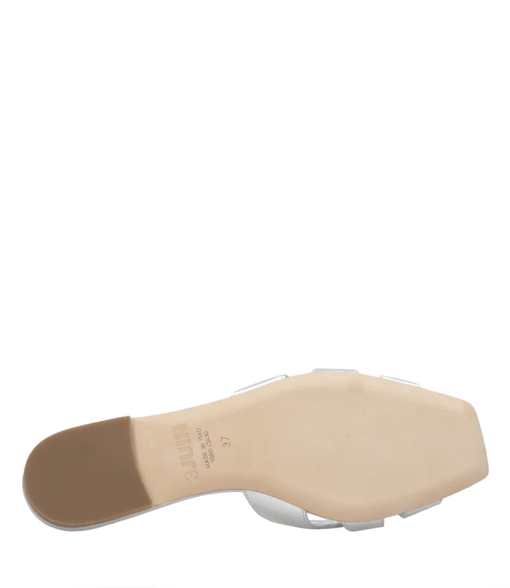 Ciabatta 3Juin Nerea realizzata in pelle laminata con tre fasce superiori intrecciate. Silhouette minimalista che spazia dallo stile classico al casual.