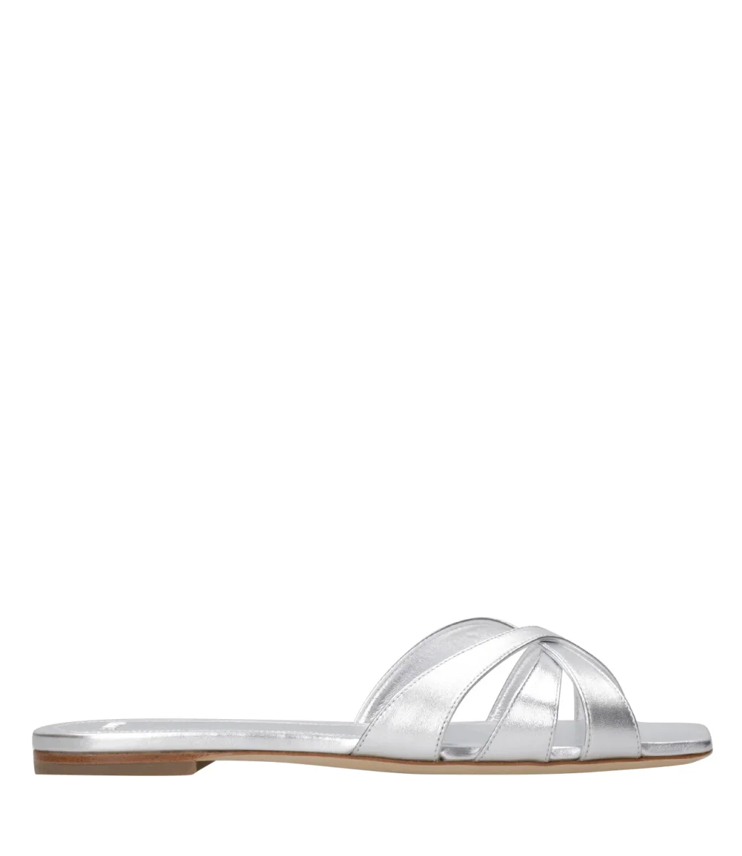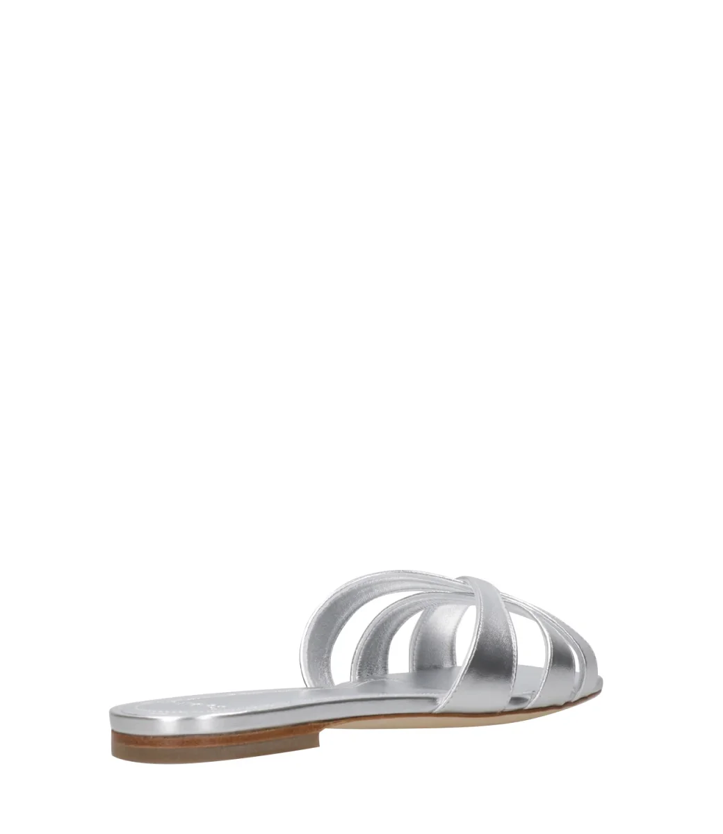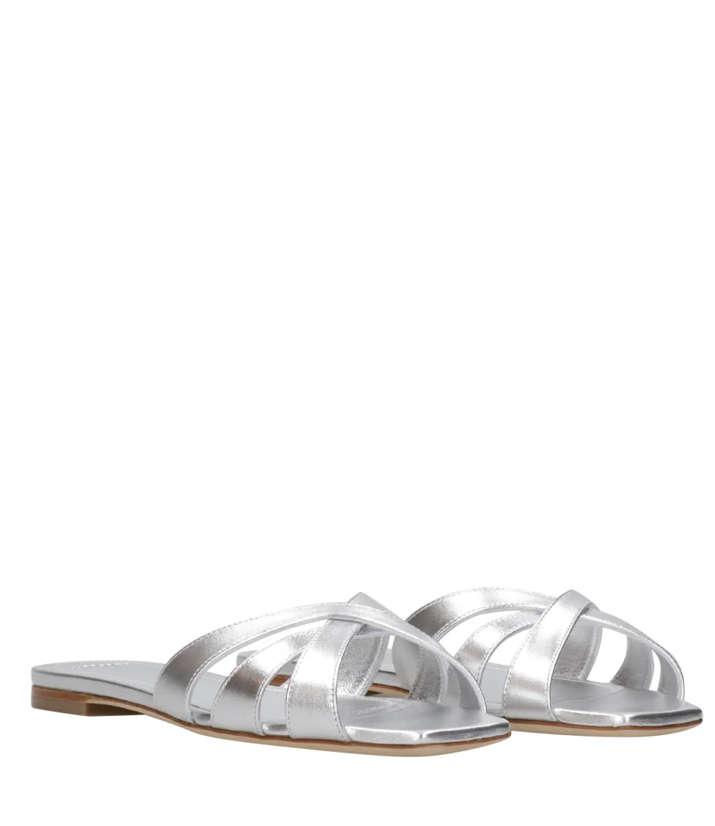 Ciabatta 3Juin Nerea realizzata in pelle laminata con tre fasce superiori intrecciate. Silhouette minimalista che spazia dallo stile classico al casual.