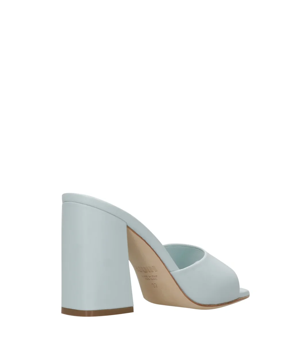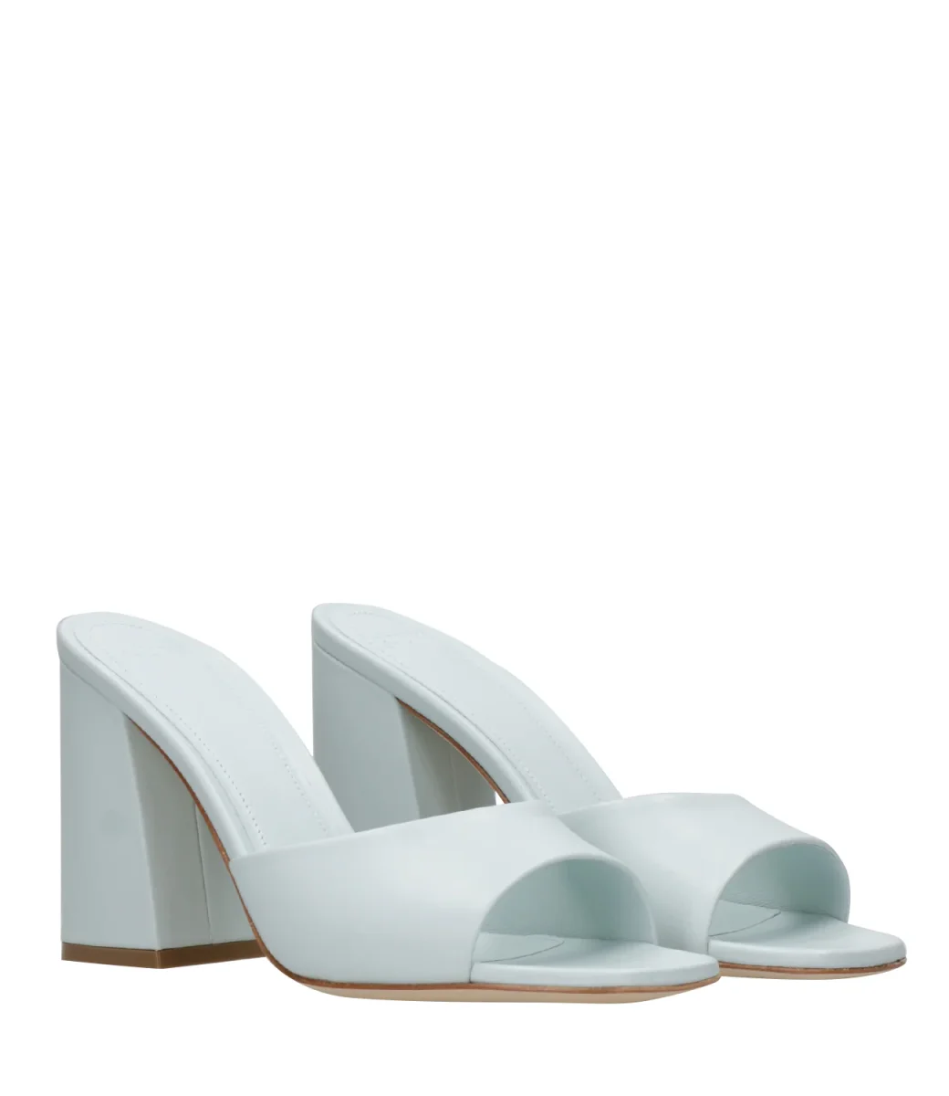 Dettagli:– Pelle– Punta aperta– Fascia larga– Soletta in pelle logata– Suola in cuoio– Tacco largo– Altezza 7cm