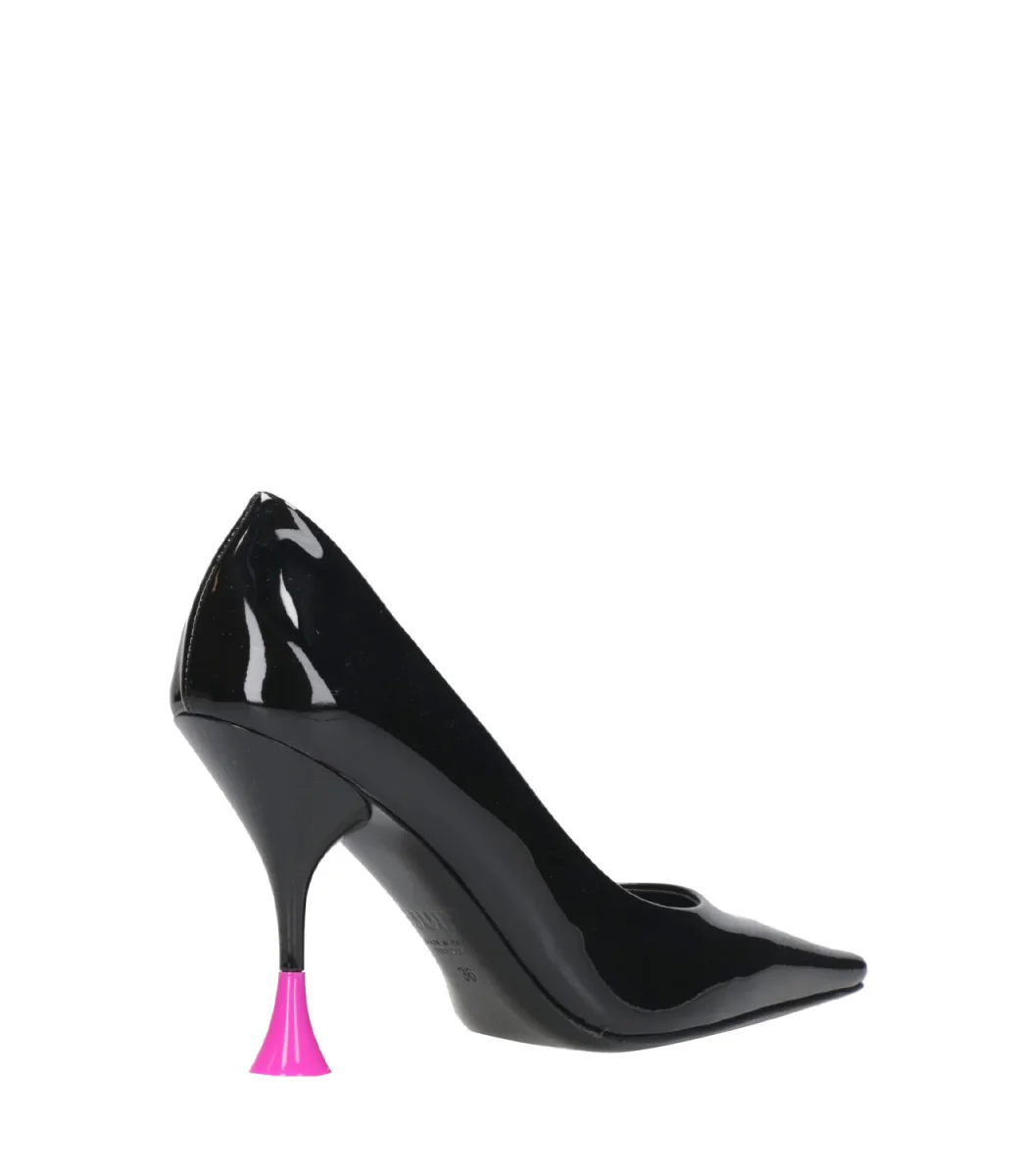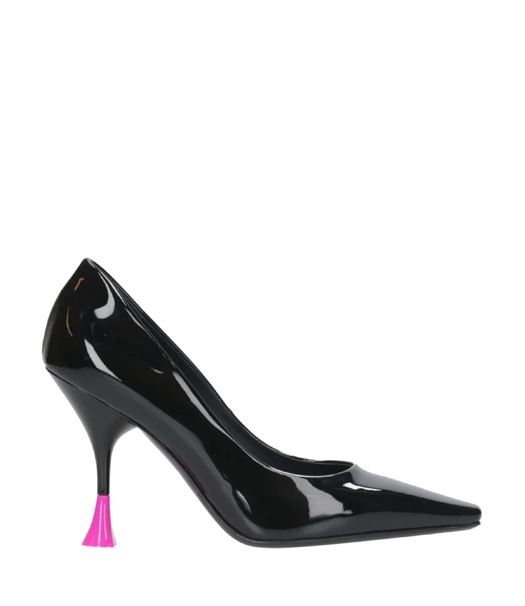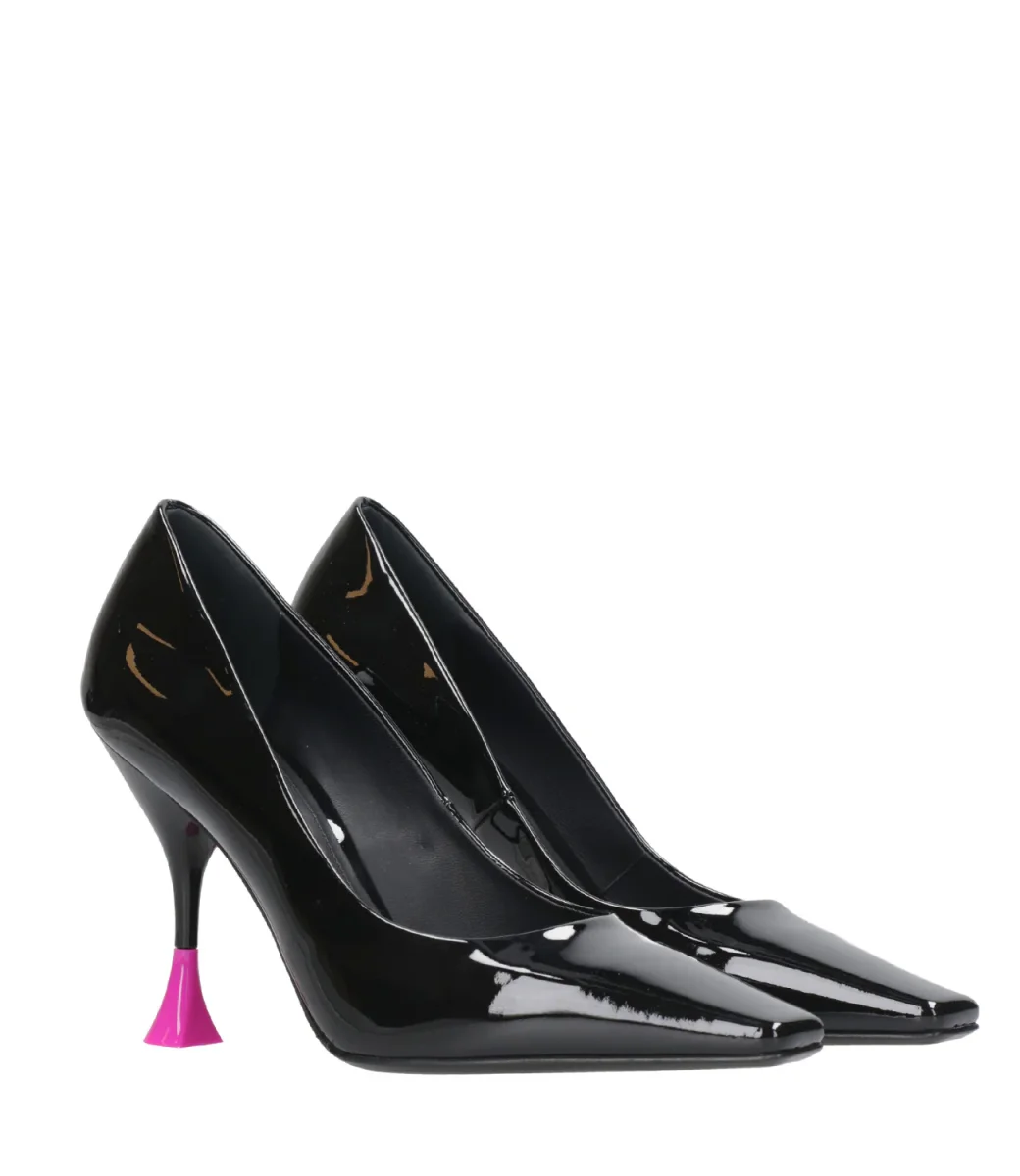 Dettagli:– Punta squadrata– Dettaglio tacco rosa– Vernice nera– 100% Pelle– Altezza tacco 9cm– Made in Italy