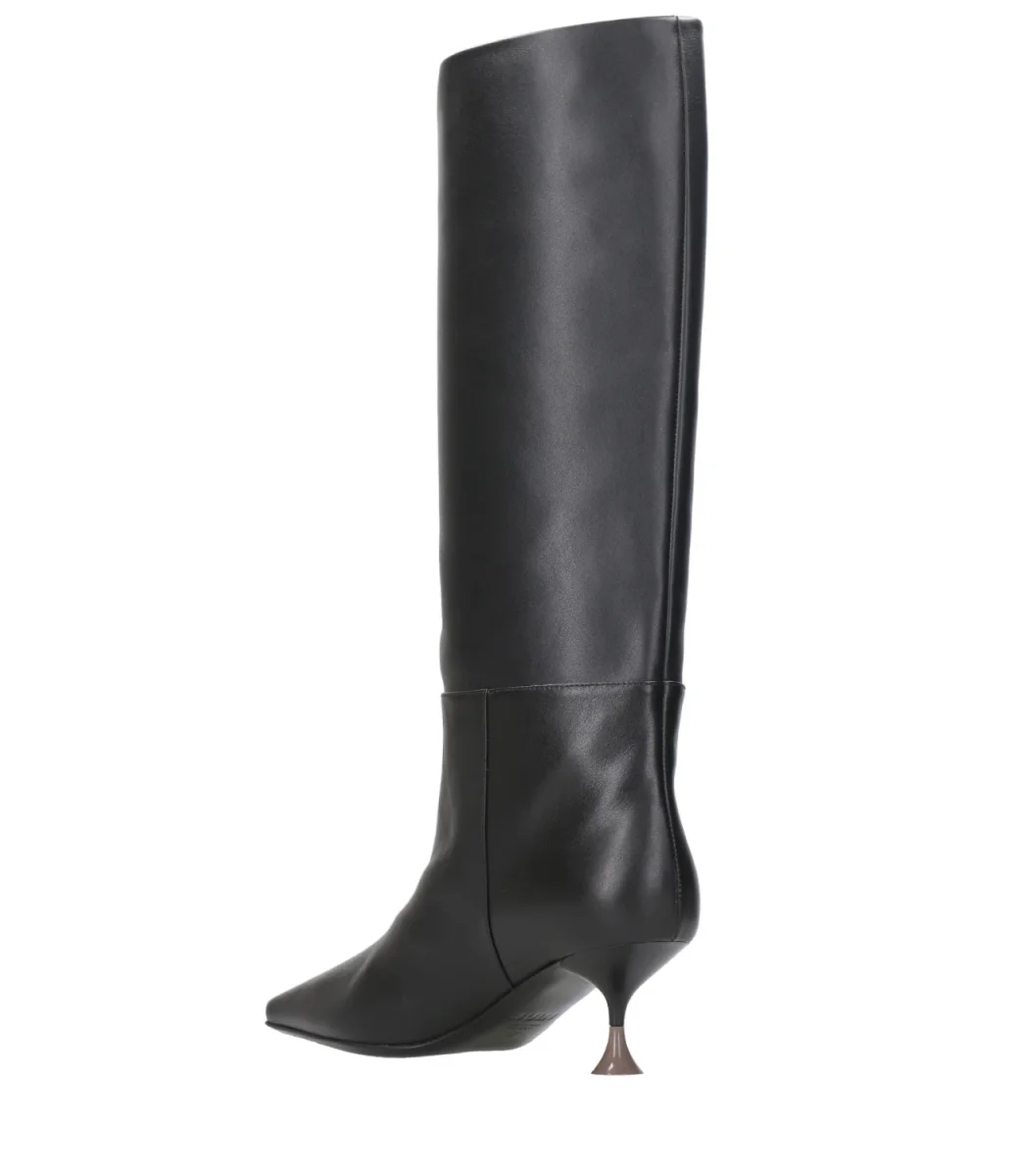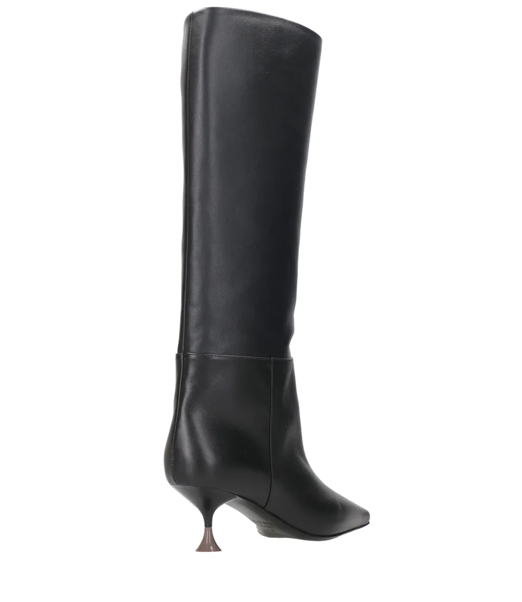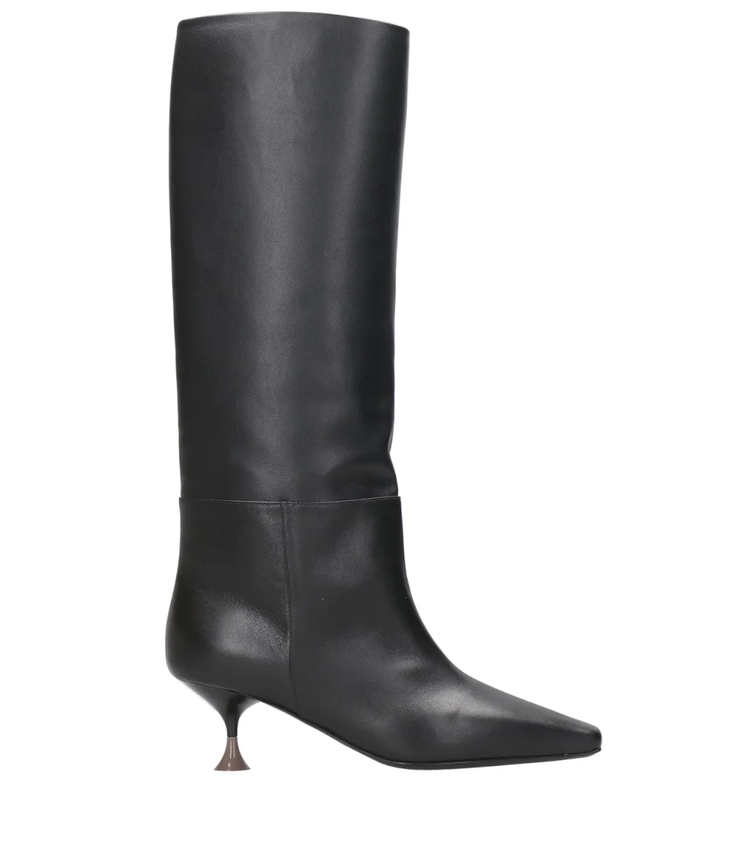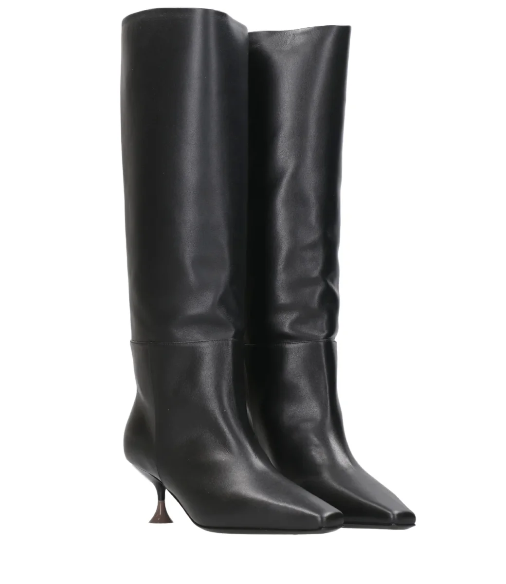 Stivale 3Juin Nancy in pelle, gambale alto, design a punta quadrata, slip-on, soletta in pelle con logo, suola esterna in pelle e tacco scultoreo bicolore .