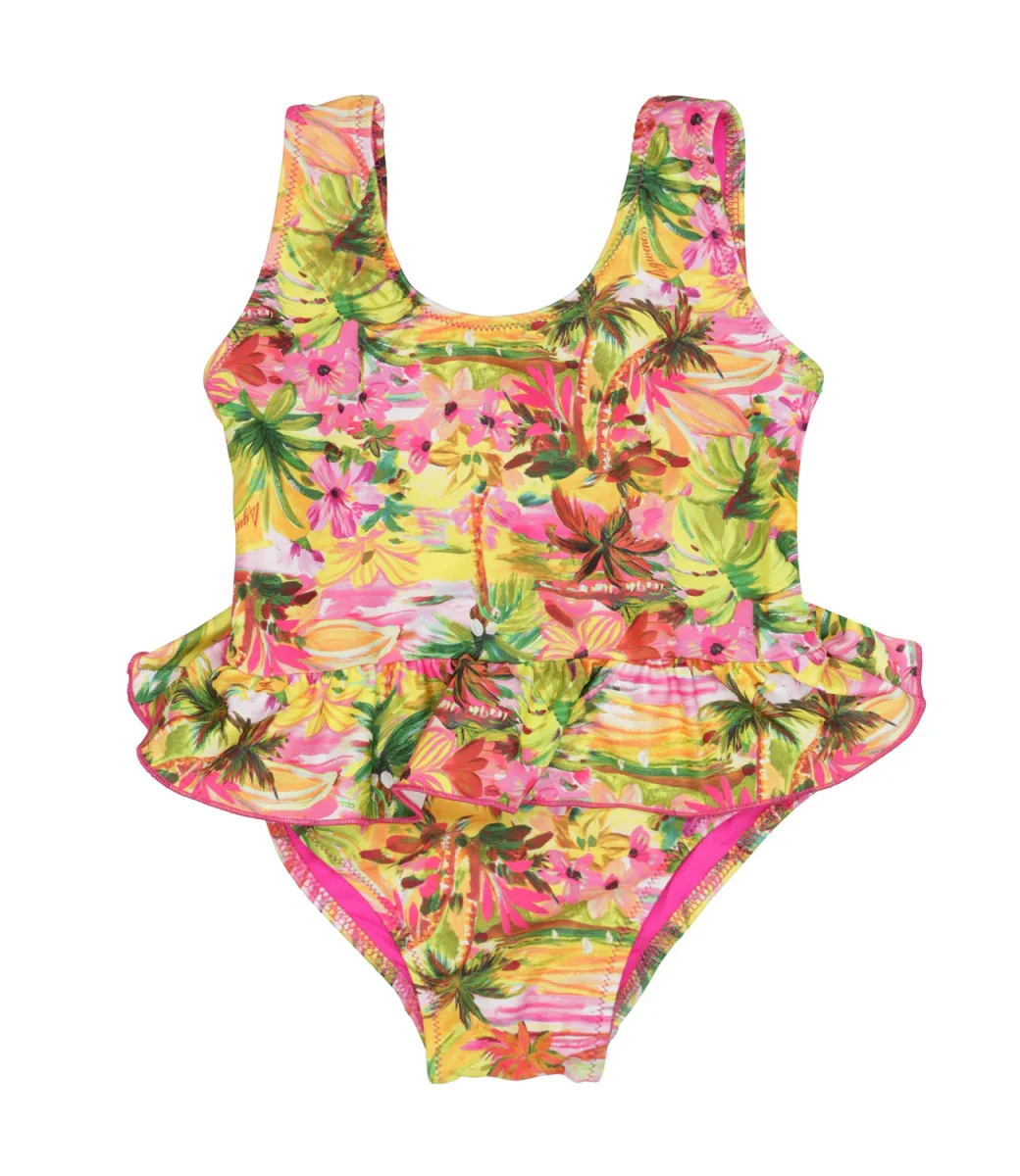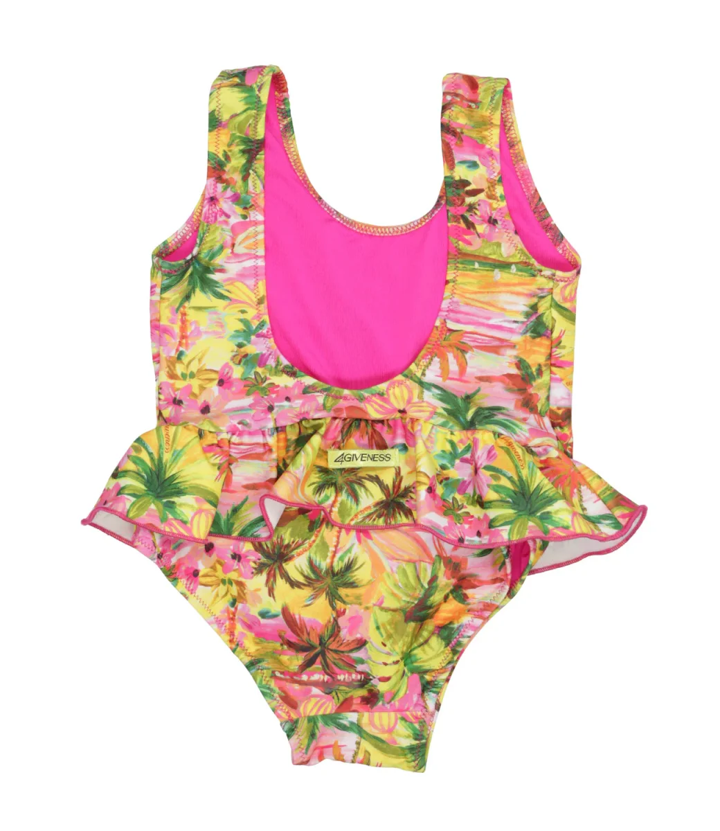 Costume intero 4giveness Kids Balza Eden Soul in lycra con rouche e stampa con fantasia all over.