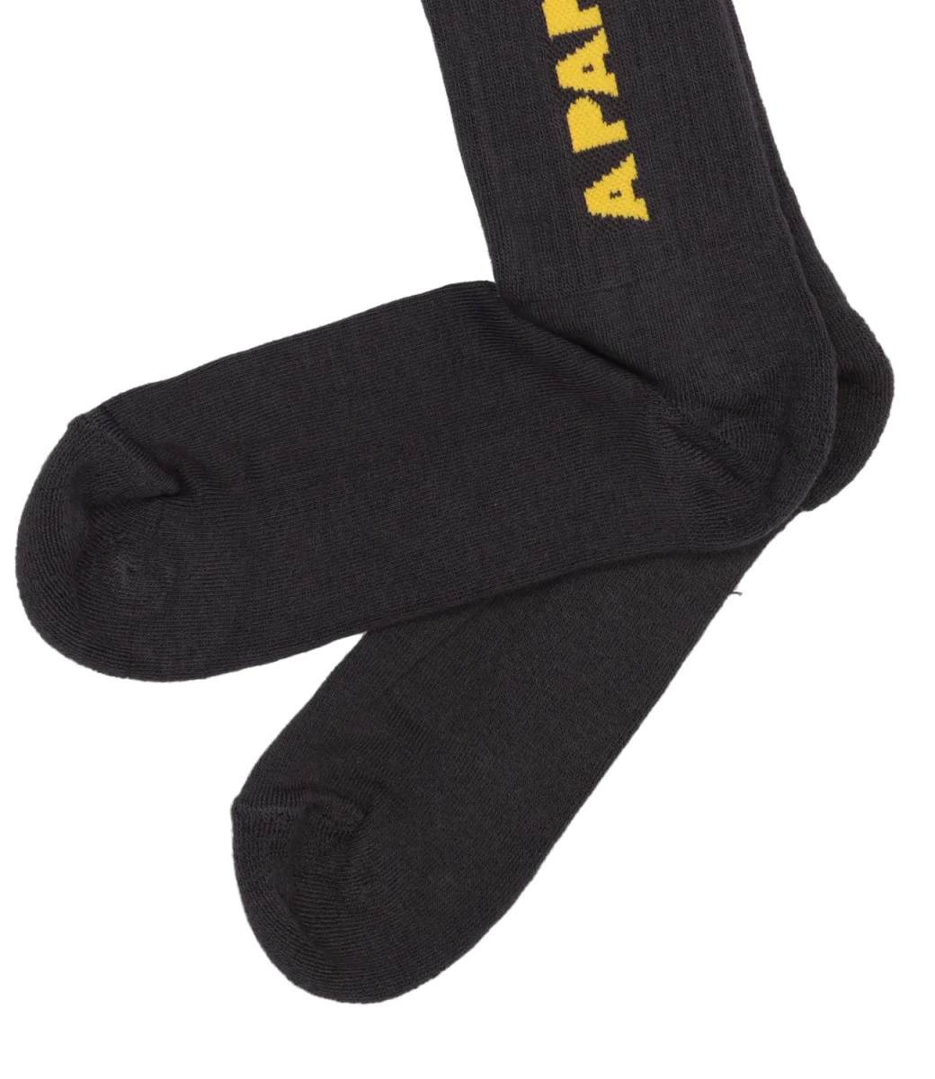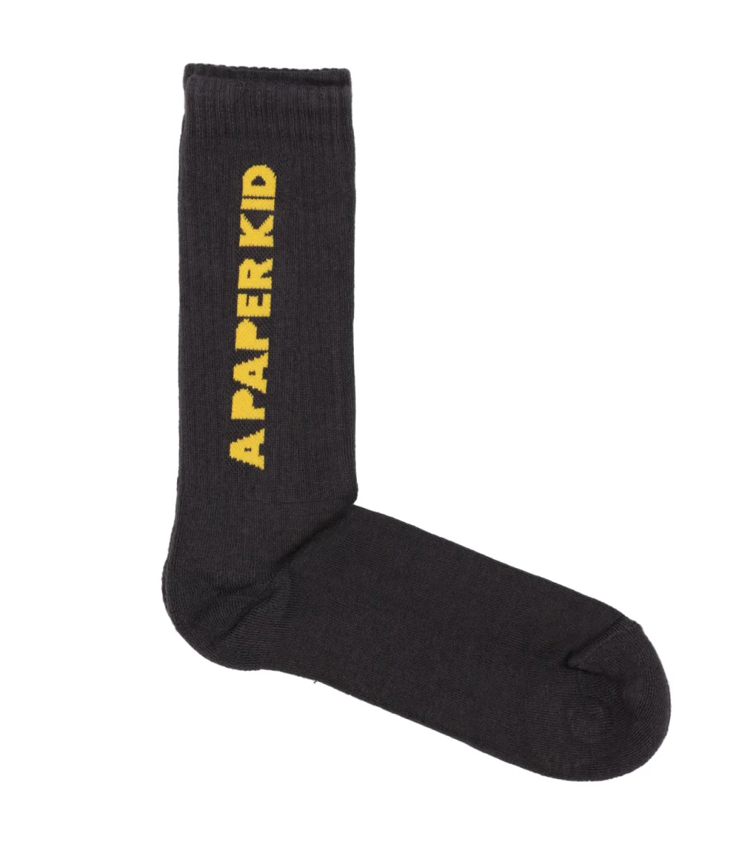 Calzini A Paper Kid in cotone nero con logo jacquard a contrasto giallo, motivo a coste, tallone preformato.
