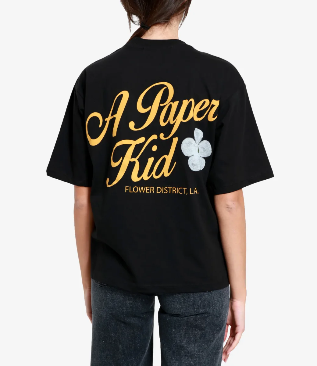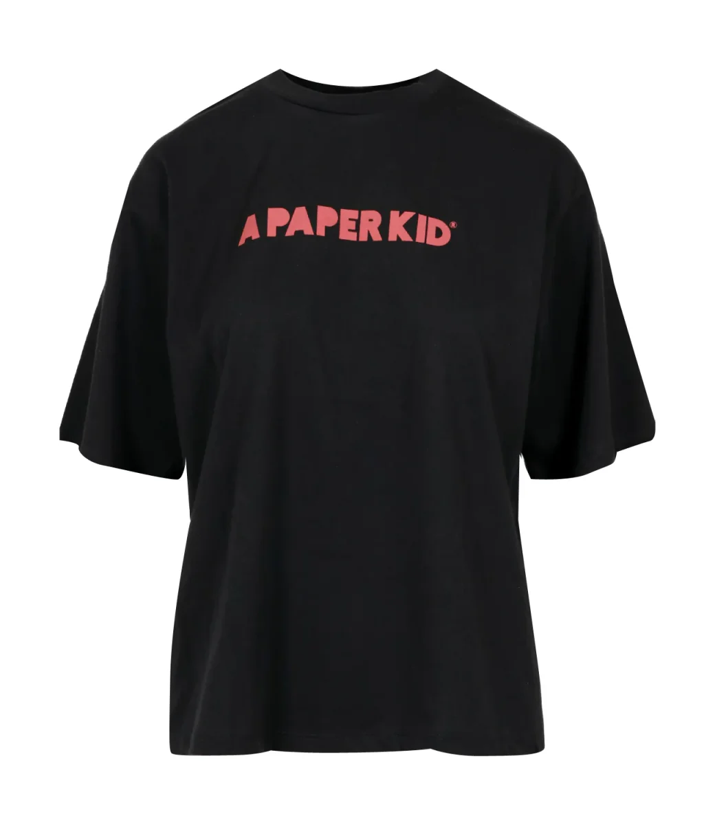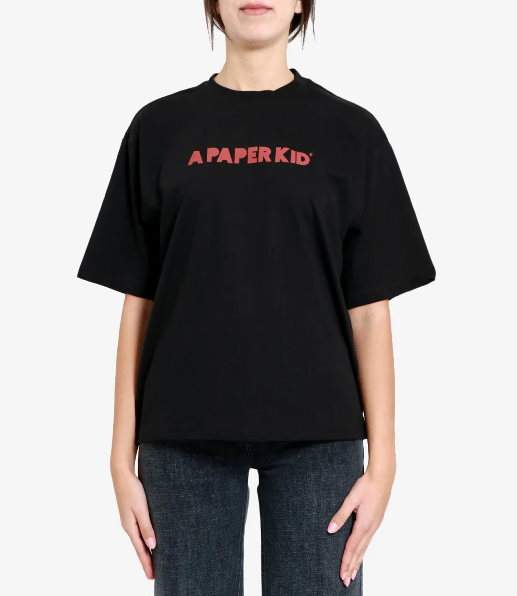 T-Shirt A Paper Kid in cotone a girocollo e manica corta con logo stampato sul petto e sulla schiena.