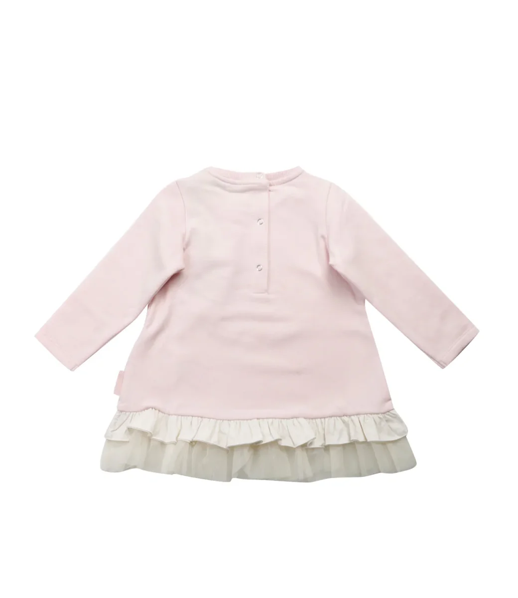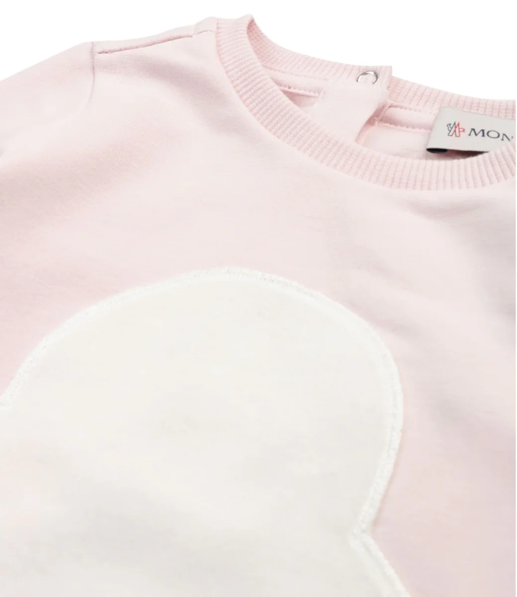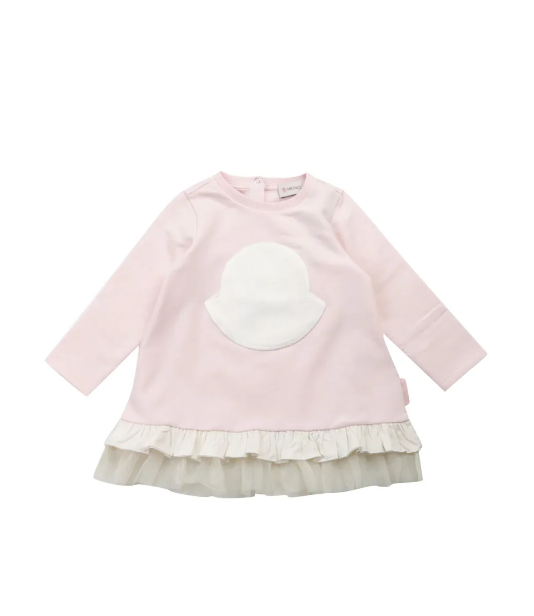 Abito in caldo cotone con logo Moncler applicato frontalmente con ruches finali.