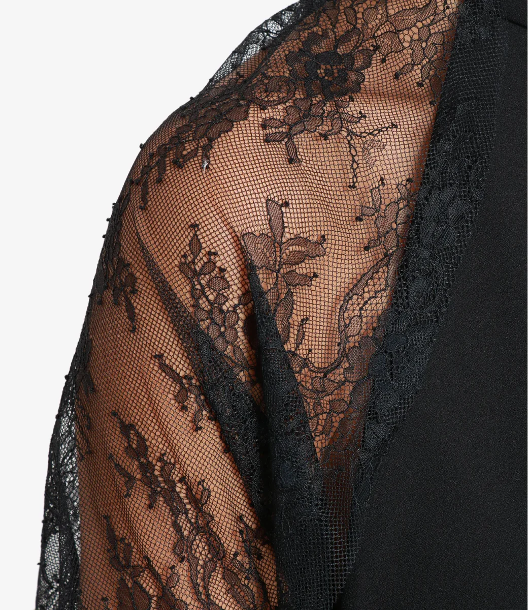 Dettagli:– Pizzo– Maniche lunghe con polsini merlettati– Vestibilità regolare