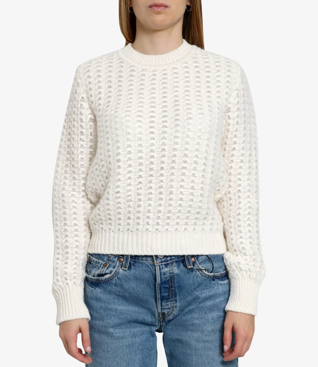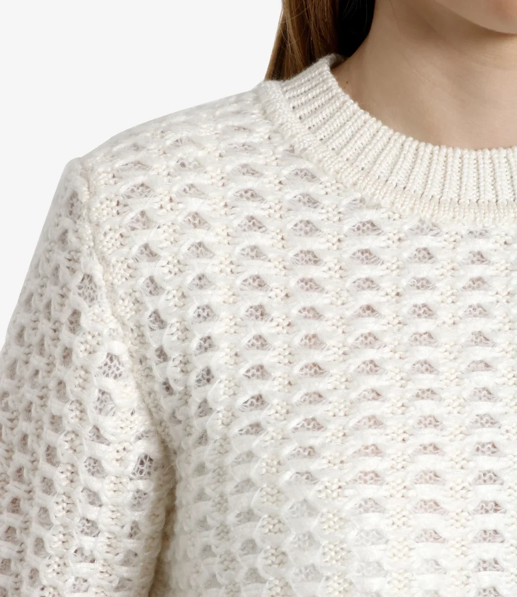 Maglia Alberta Ferretti in misto lana e Mohair, motivo jacquard vanise´ realizzato a due fili, girocollo a coste inglesi, maniche lunghe e fondo con finiture a coste.