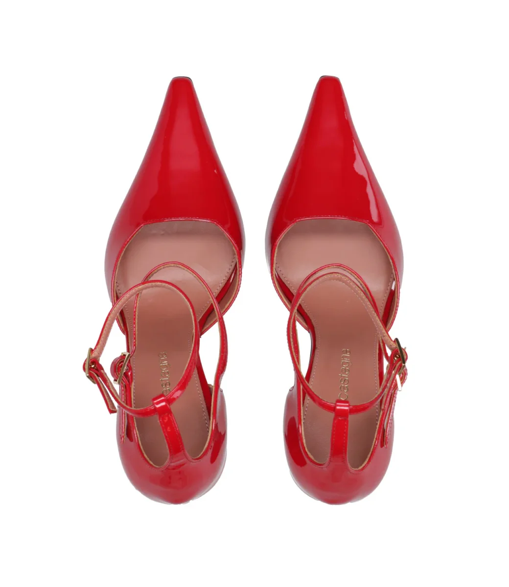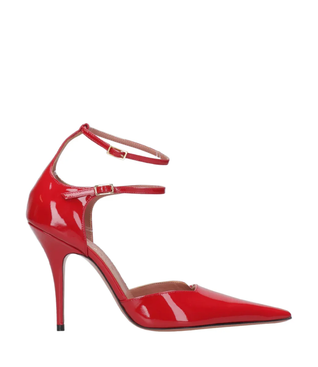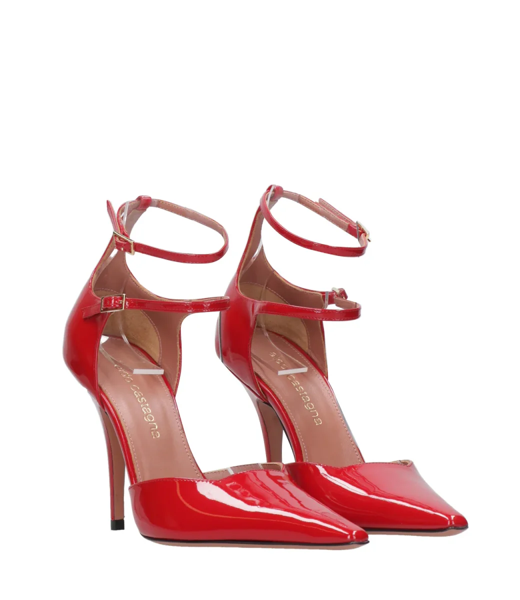 Decolletè Aldo Castagna Erin1, in pellame vernice. Cinturini alla caviglia regolabili. Fodera color apricot con suola in tono.Suola in cuoio con antiscivolo in gomma.