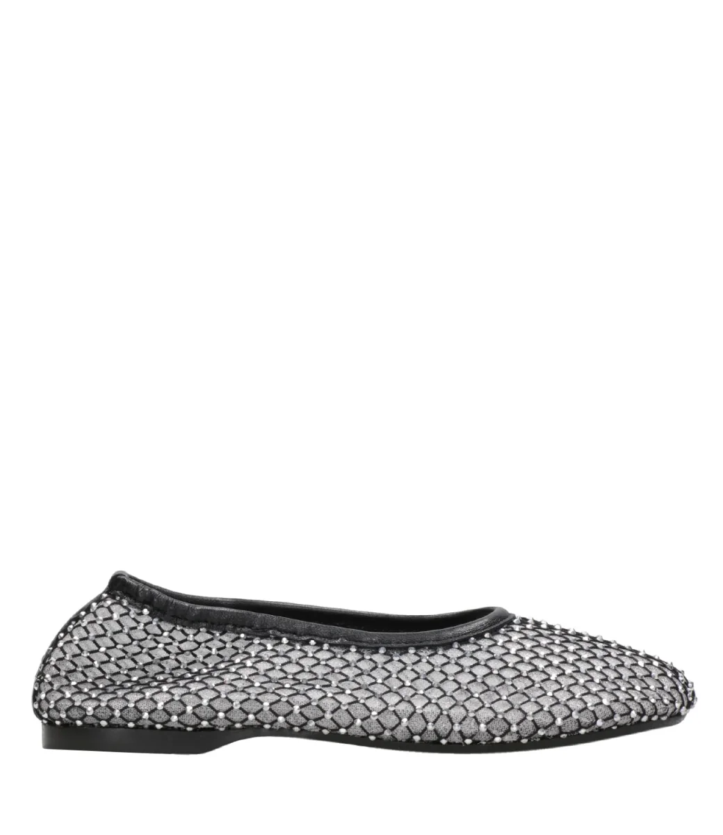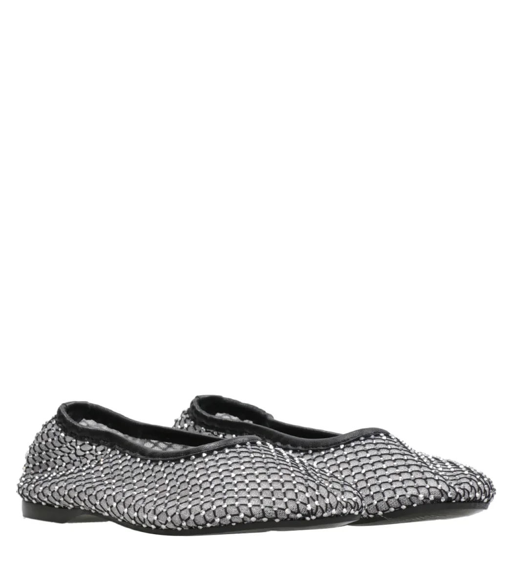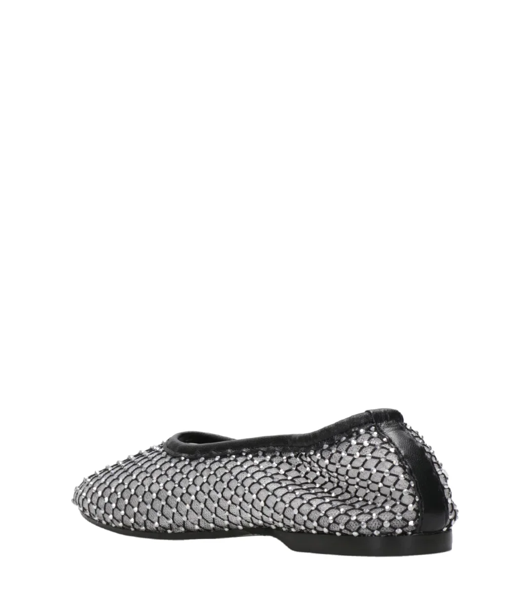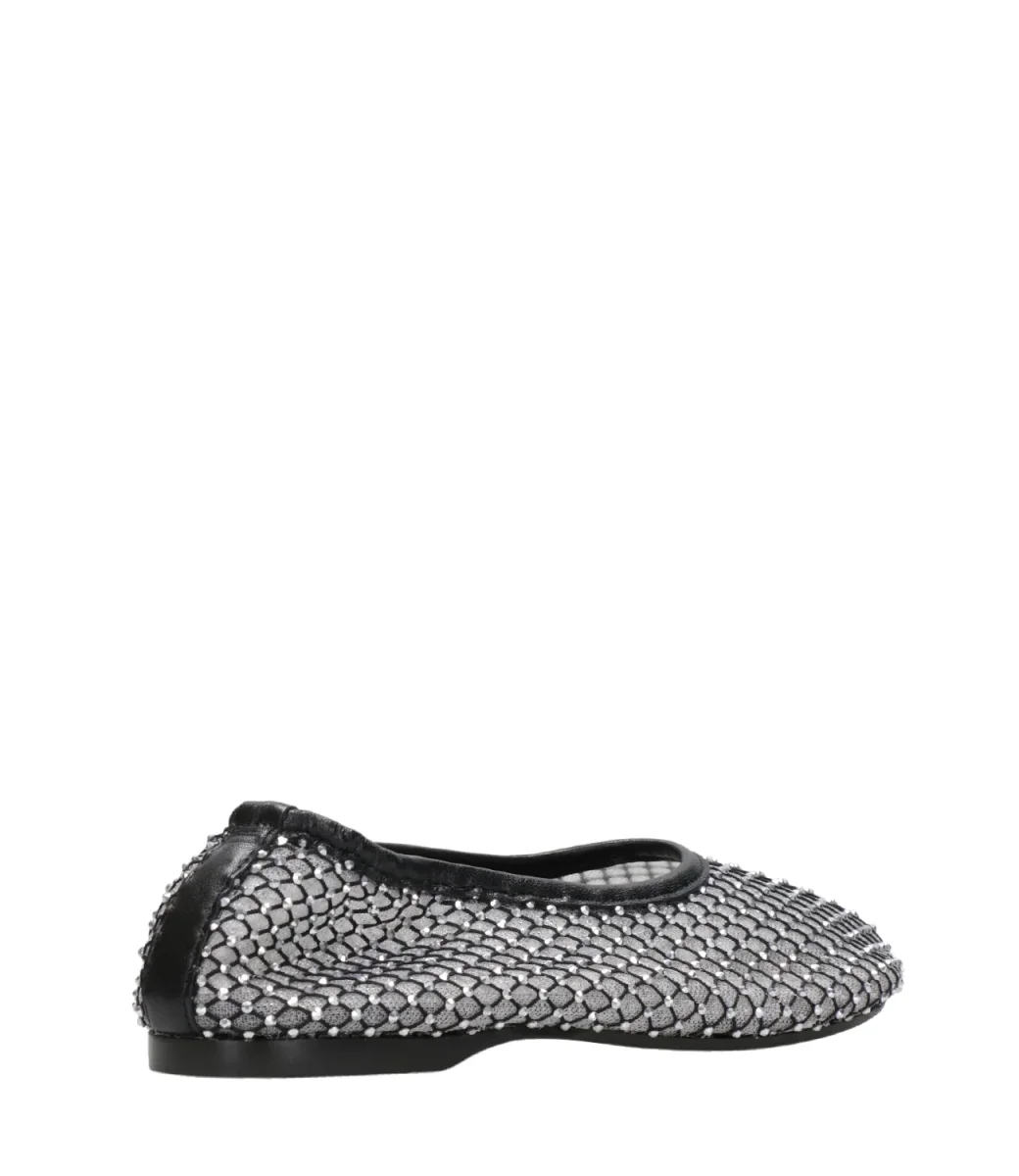 Ballerina Alohas Lorain in rete sovrapposta, una con maglia stretta, l’altra in maglia larga decorata sulla superficie con micro borchie all over, il tutto rifinito con un bordo superiore in pelle.