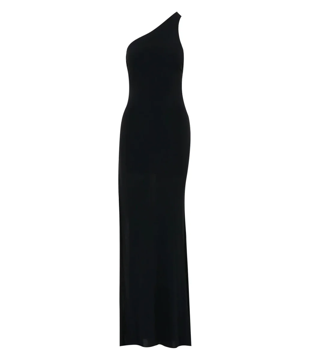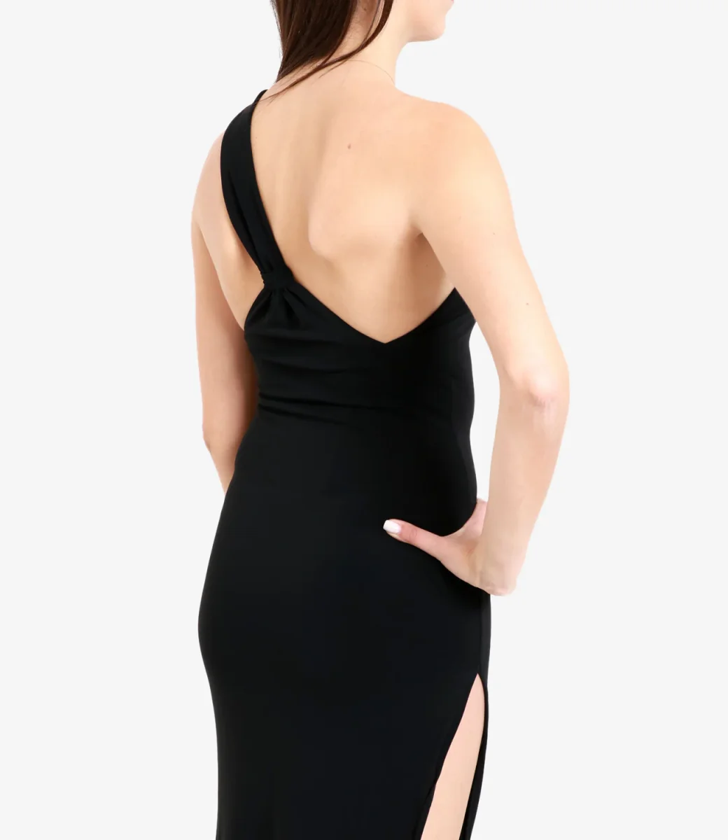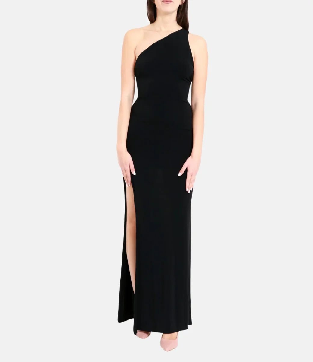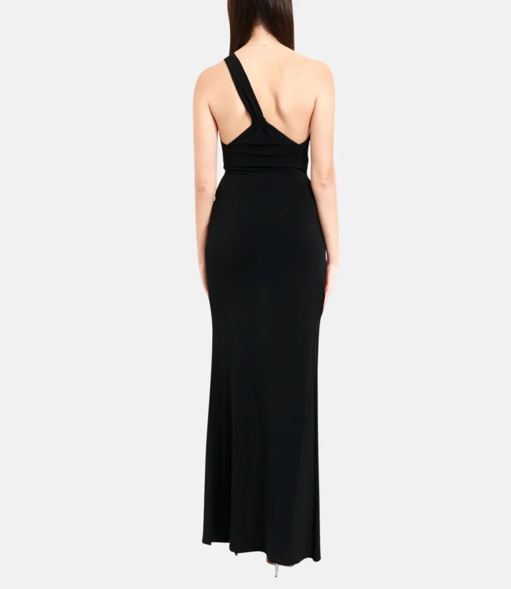 Abito Aniye By Demi modello lungo dalla linea per una donna sofisticata. Design monospalla con spacco sul lato per occasioni speciali.