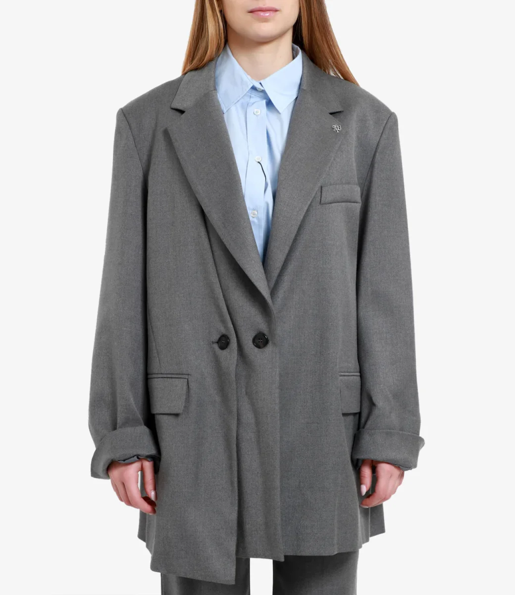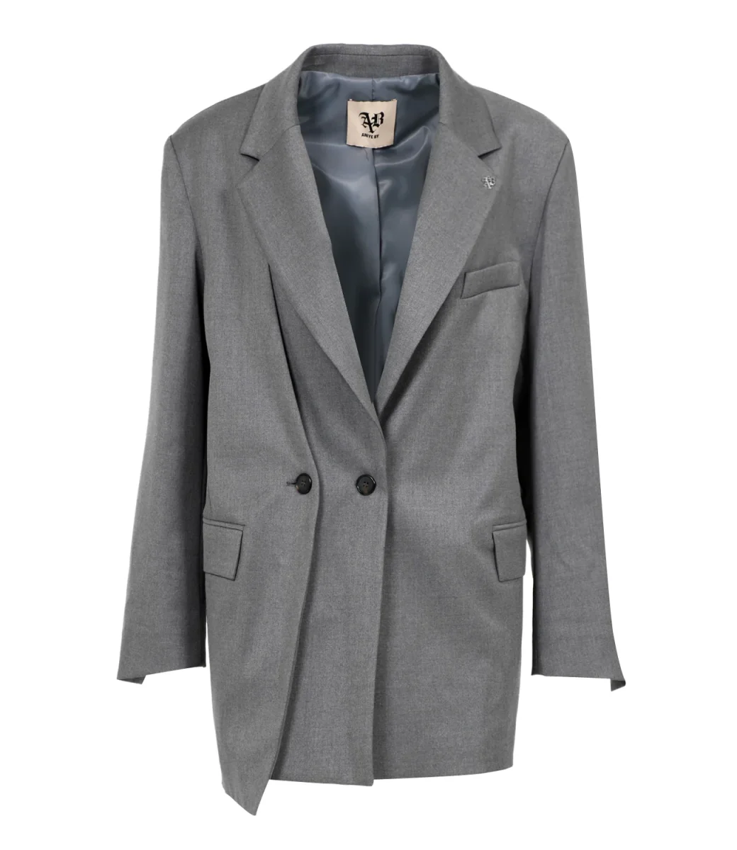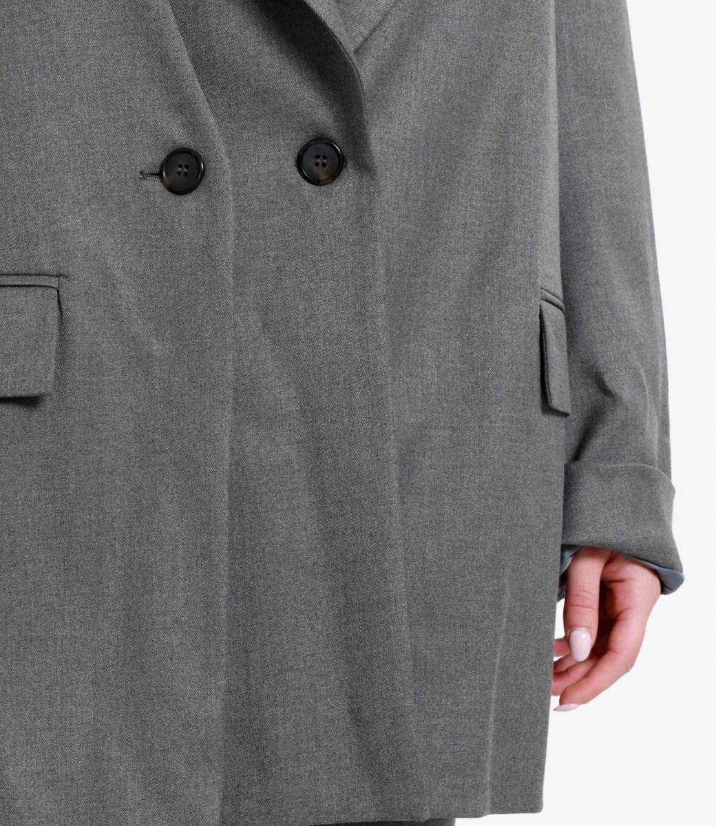 Giacca Aniye By Tessa tessuto fresco di lana. Capo dalla silhouette oversize, con chiusura a doppio petto dal designe con apparenza in doppio strato, tasca pochette sul petto lato sinistro, maniche lunghe, tasche con patta applicate sul davanti.