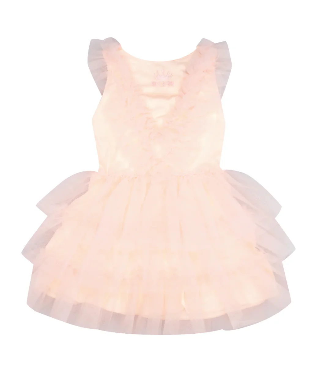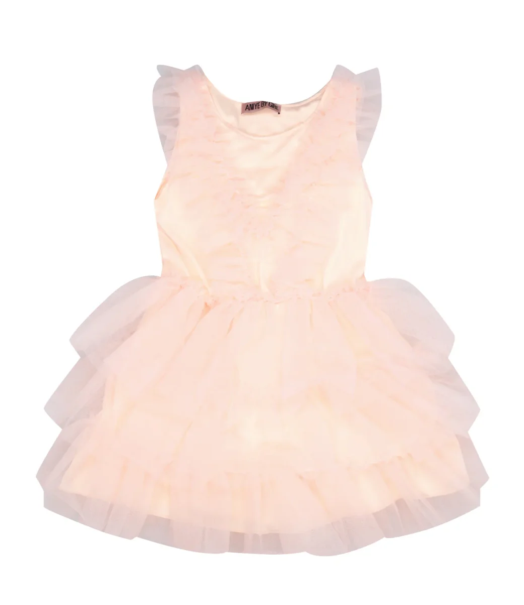 Abito Aniye By Girl in tulle rosa smanicato con dettagli davanti.