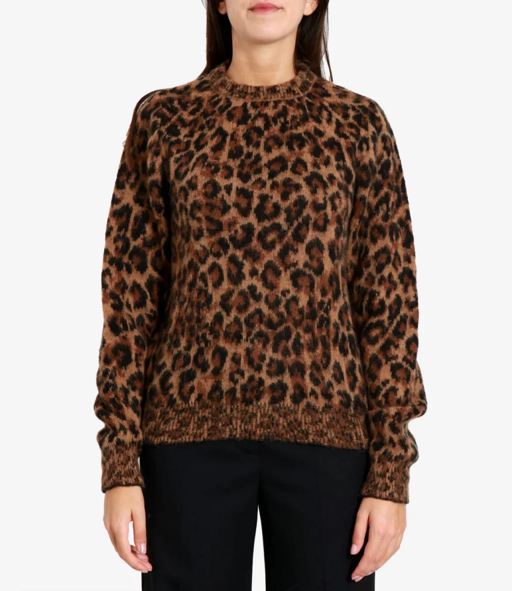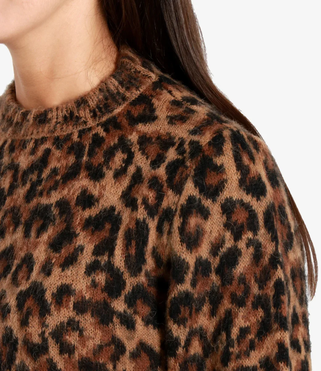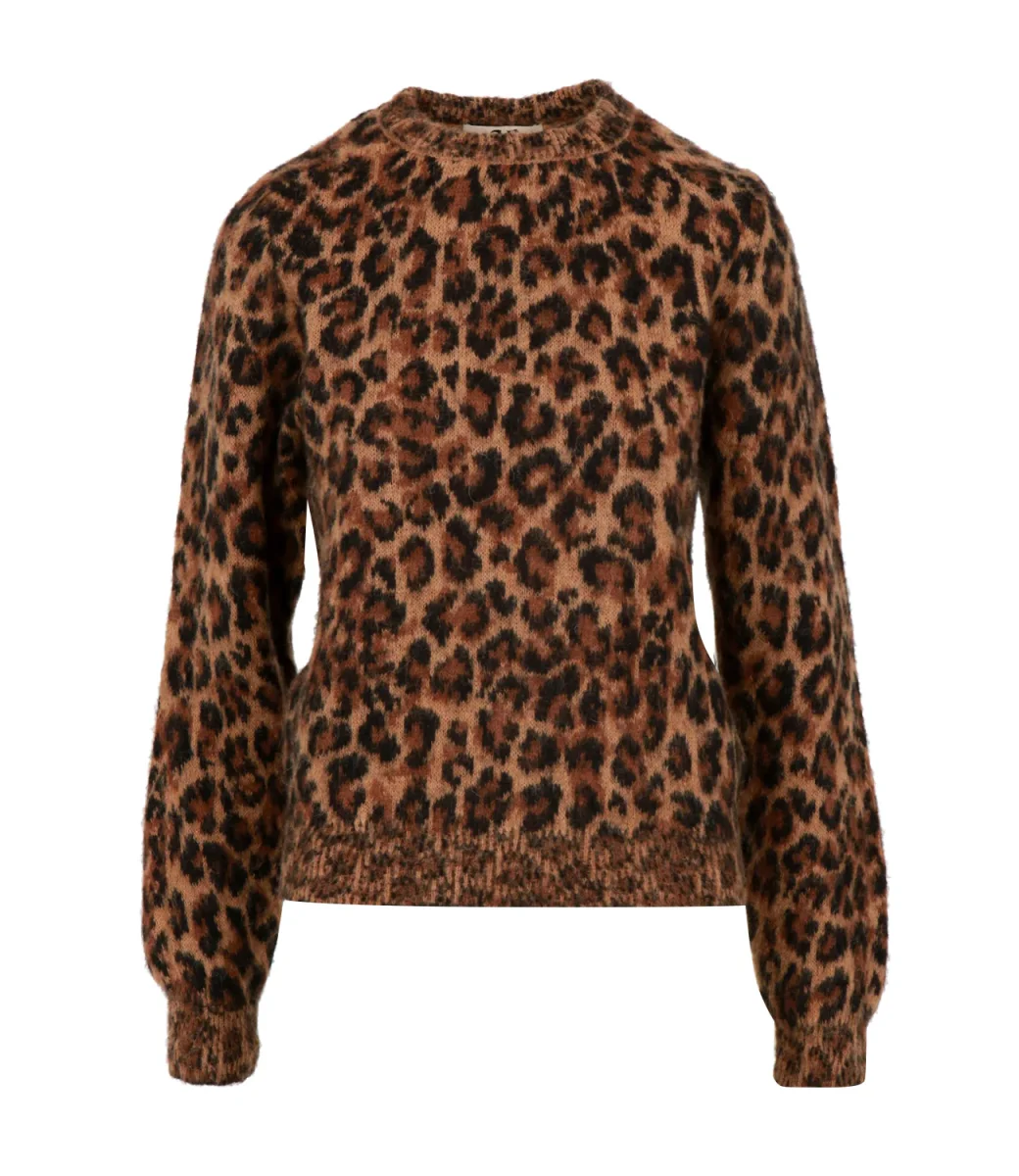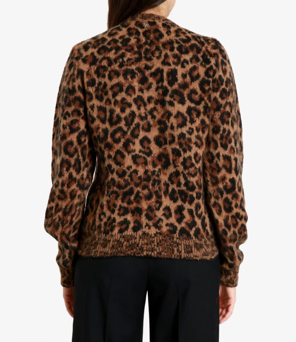 Maglia Aniye By Keira in misto alpaca con motivo leopardato. Silhouette lineare con rifinitura a costine. Capo dal carattere deciso.