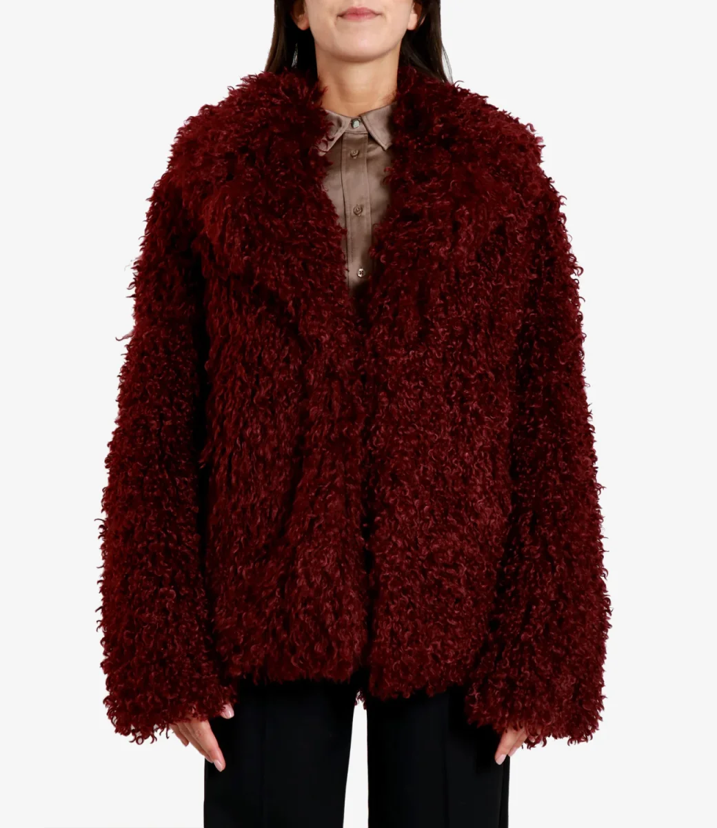 Pelliccia Aniye By Poison in faux fur effetto fluffy, modello dalle linee ampie, taglio boyfriend dal revers pronunciato, per chi ama vestire con carattere, stile glam metropolitano.