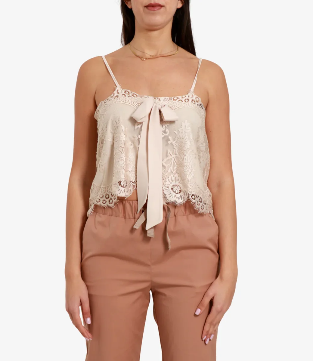 Top Aniye By Silvia in tulle e pizzo con inserti in organza, capo dal carattere sofisticato per rendere prezziosi look casual o per outfit eleganti.