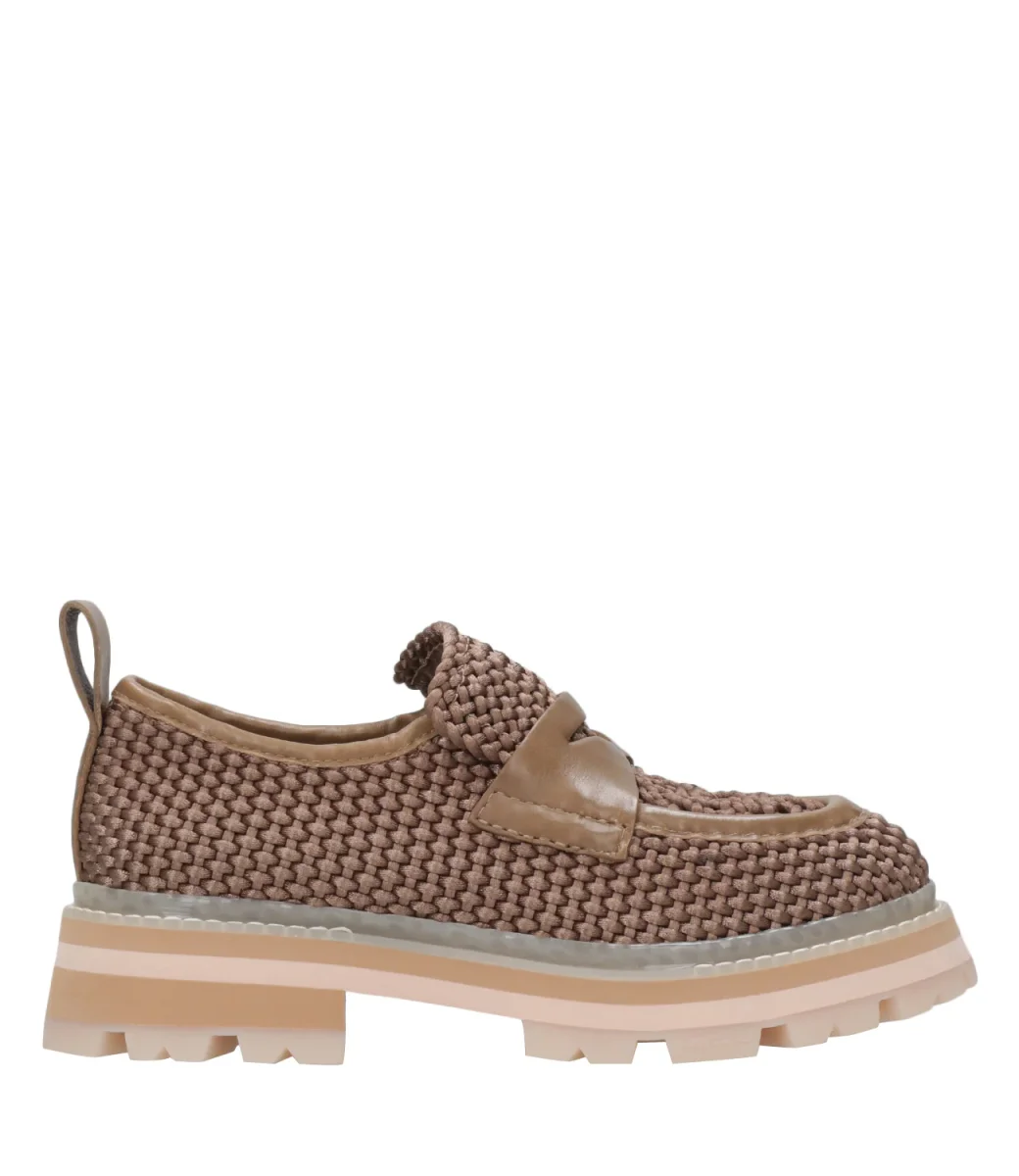 Il marchio francese Ash reinventa l’iconica silhouette dei mocassini con questo paio. Realizzate in tessuto di raso utilizzando una tecnica intrecciata, sono rifinite con un classico slot per penny e punta a mandorla, mentre la suola platform con tacchetti offre un appeal casual.