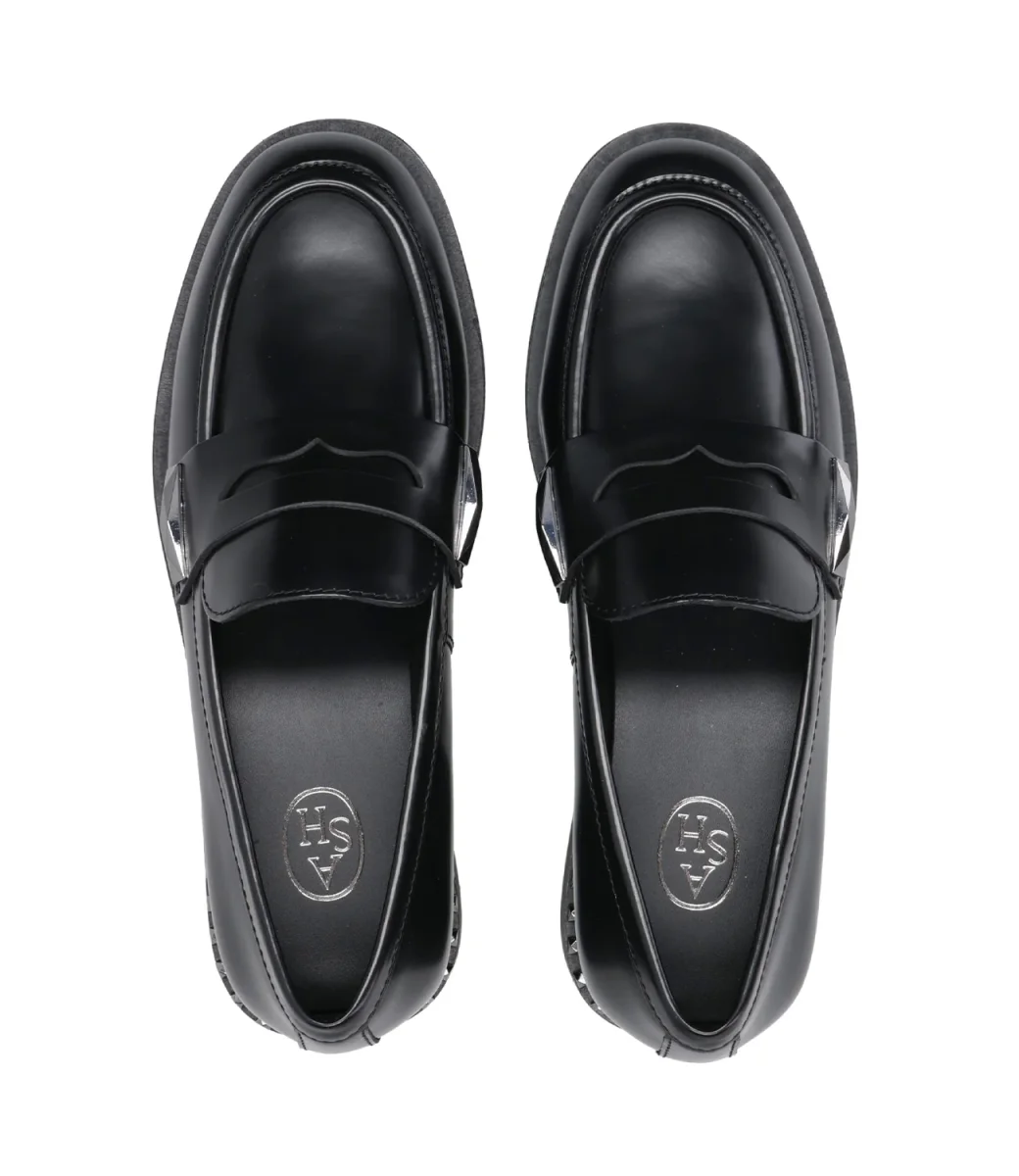 Mocassino Ash Main Whispers Tu , in pelle dal design moderno con uno stile borchiato laterale e una suola in gomma che conferisce stabilità e struttura nel movimento.