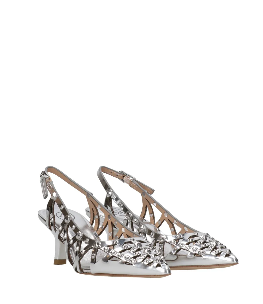 – Applicazioni con borchie all-over in metallo argentato