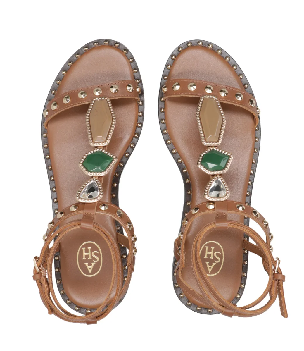 Sandalo Ash Main in pelle con cinturino alla caviglia, tomaia e tacco decorati con borchie in tono, suola in cuoio.