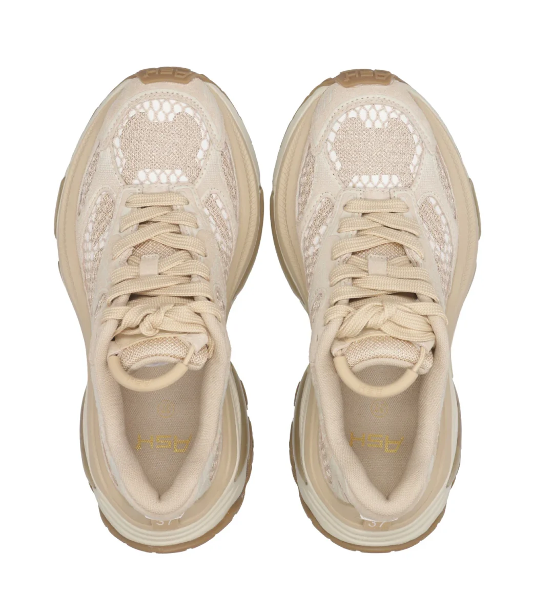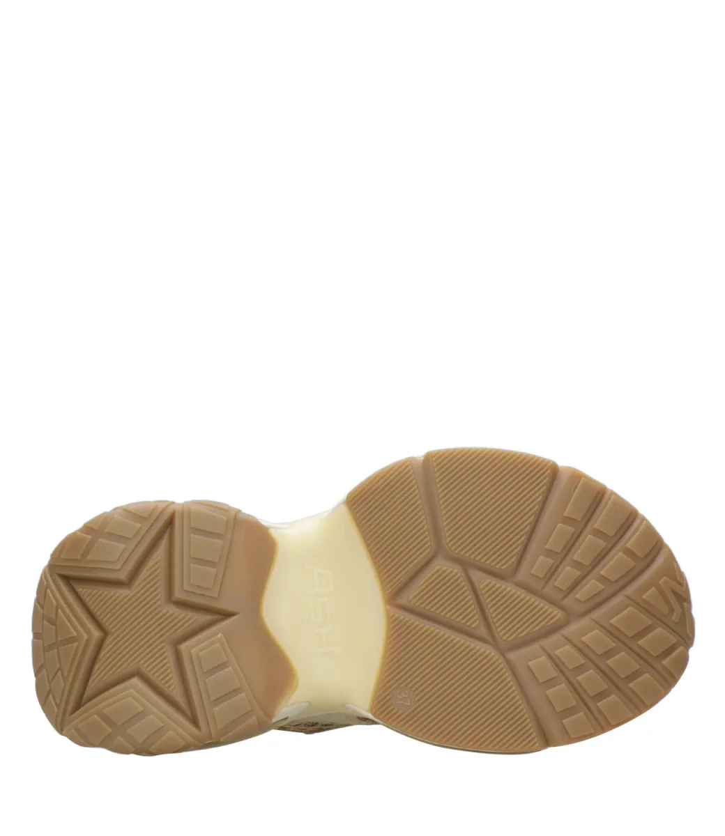 Sneakers Ash Sport Dragon realizzata con tomaia in tessuto mesh ed inserti in pelle, linguetta logata con tirante in gomma, chiusura regolabile con lacci in tessuto intrecciato. Suola in gomma. Logo sui laterali. Dal design futuristico dalla suola sagomata con bombature, sistema ammortizzante interno.