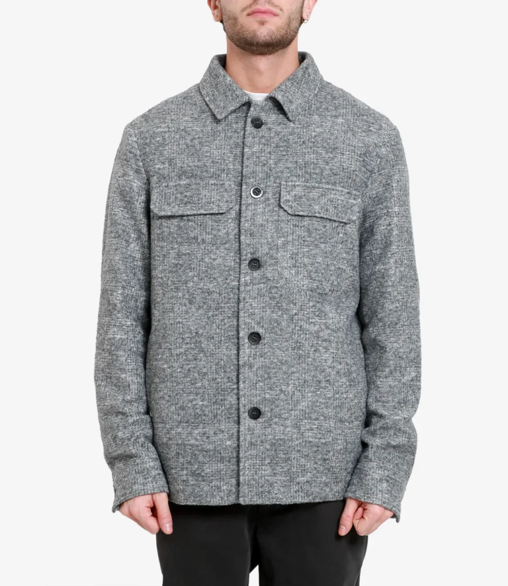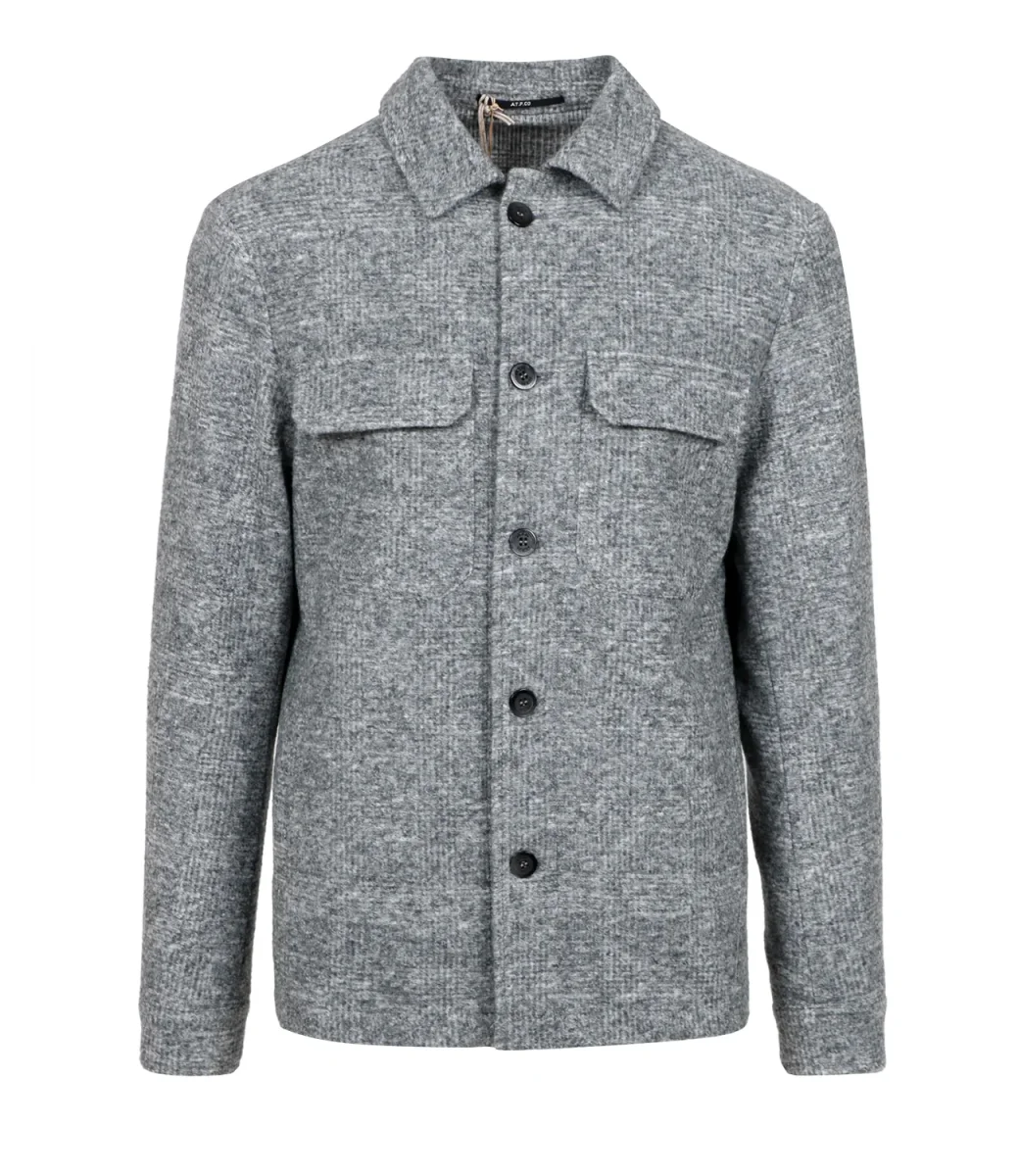 Giacca At.P.Co Orlando in madras di flanella misto lana con fantasia scozzese tono in tono, modello a camicia, collo classico a punta, tasche con patta applicate sul petto, maniche lunghe con polsini con bottoni, tasche a toppa sul davanti.