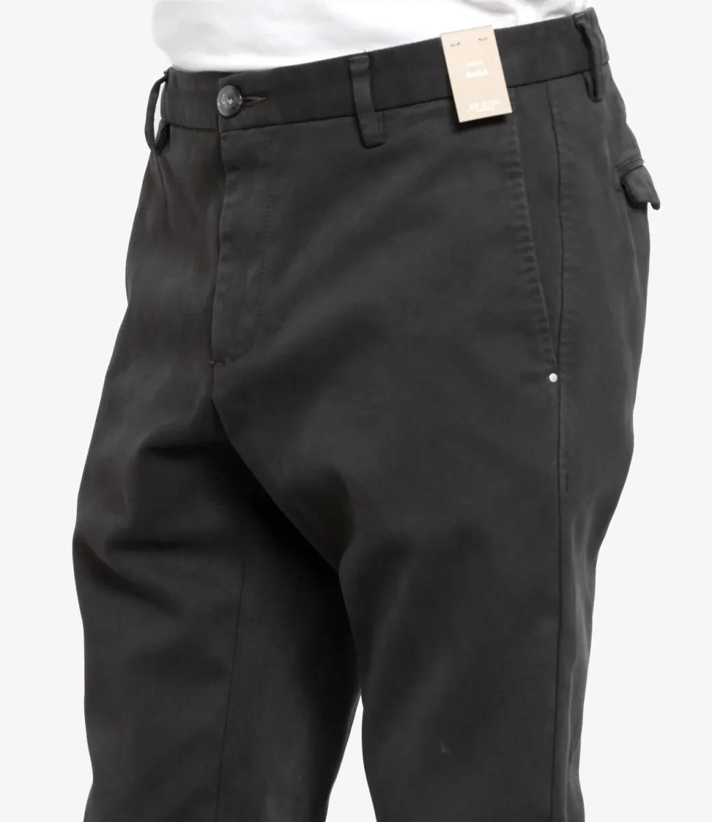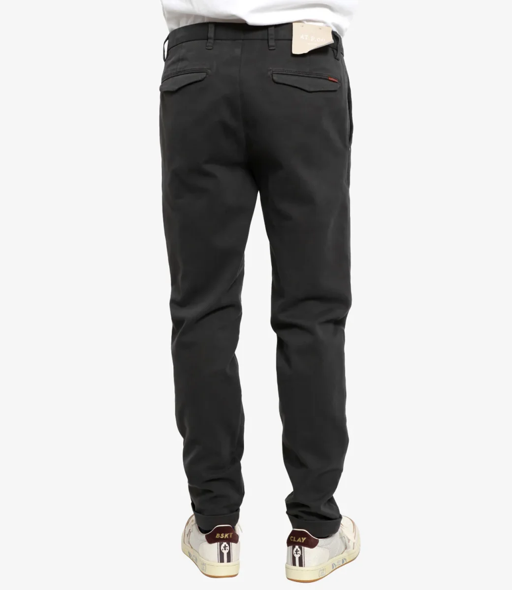 Pantalone At.P.Co Sasa in tessuto tricotina stretch, vita regolare con passanti, tasche alla francese, chiusura con bottone e zip con patta, tasche con patta sul retro con logo applicato sul bordo.
