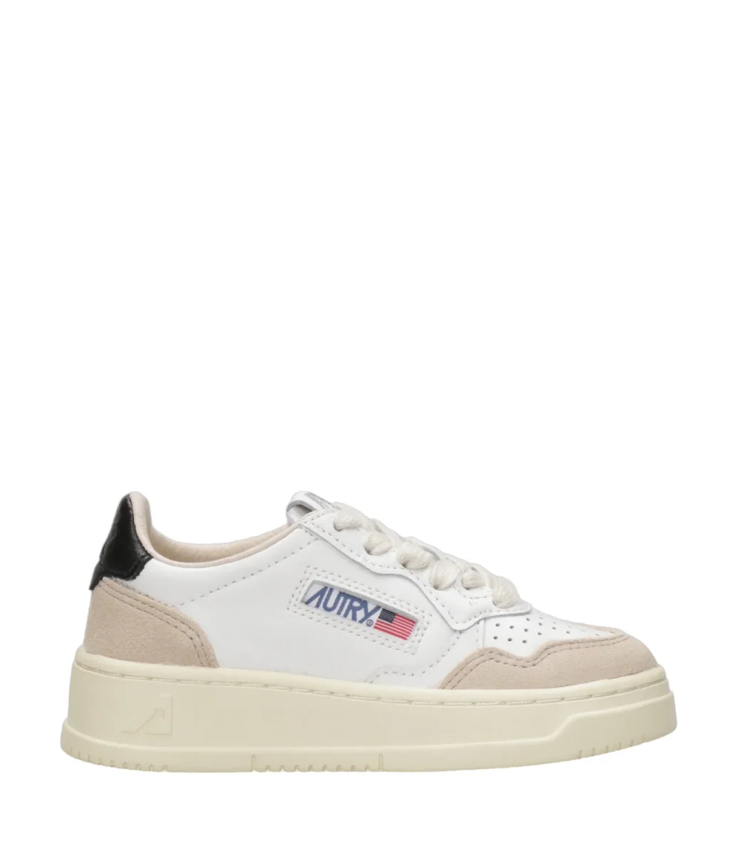 Sneakers Autry Medalist Low bassa in pelle e suede, scarpa ispirata ai modelli vintage degli anni Ottanta, reinterpretata in chiave contemporanea. Un design inconfondibile reso unico dalla tomaia in pelle bianca, verde e arancione e dal logo Autry impresso sul talloncino posteriore colore arancione.