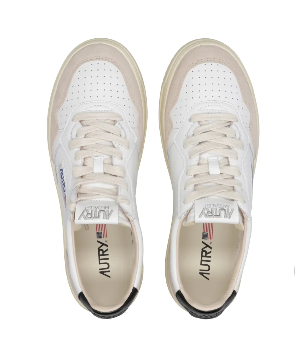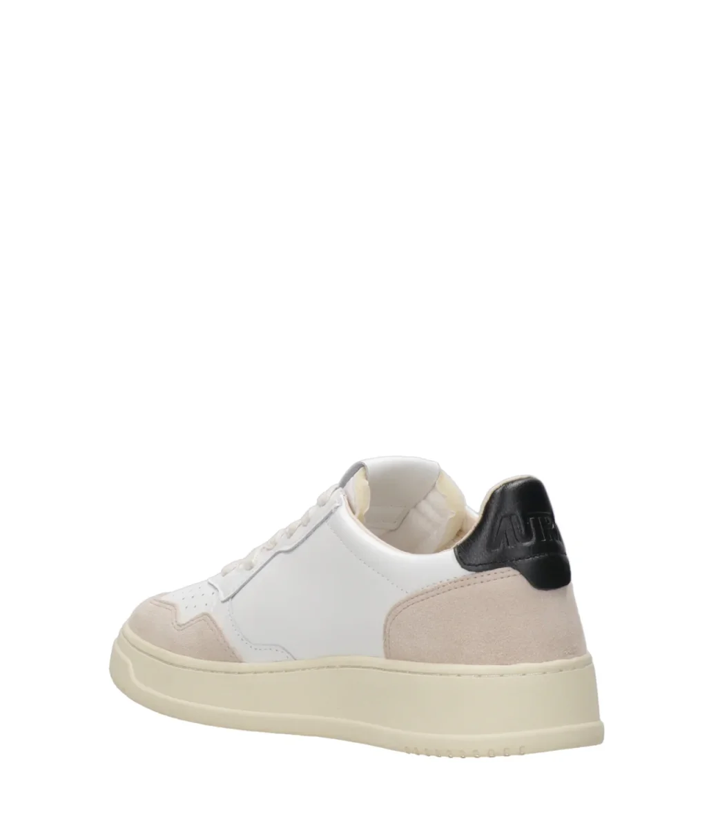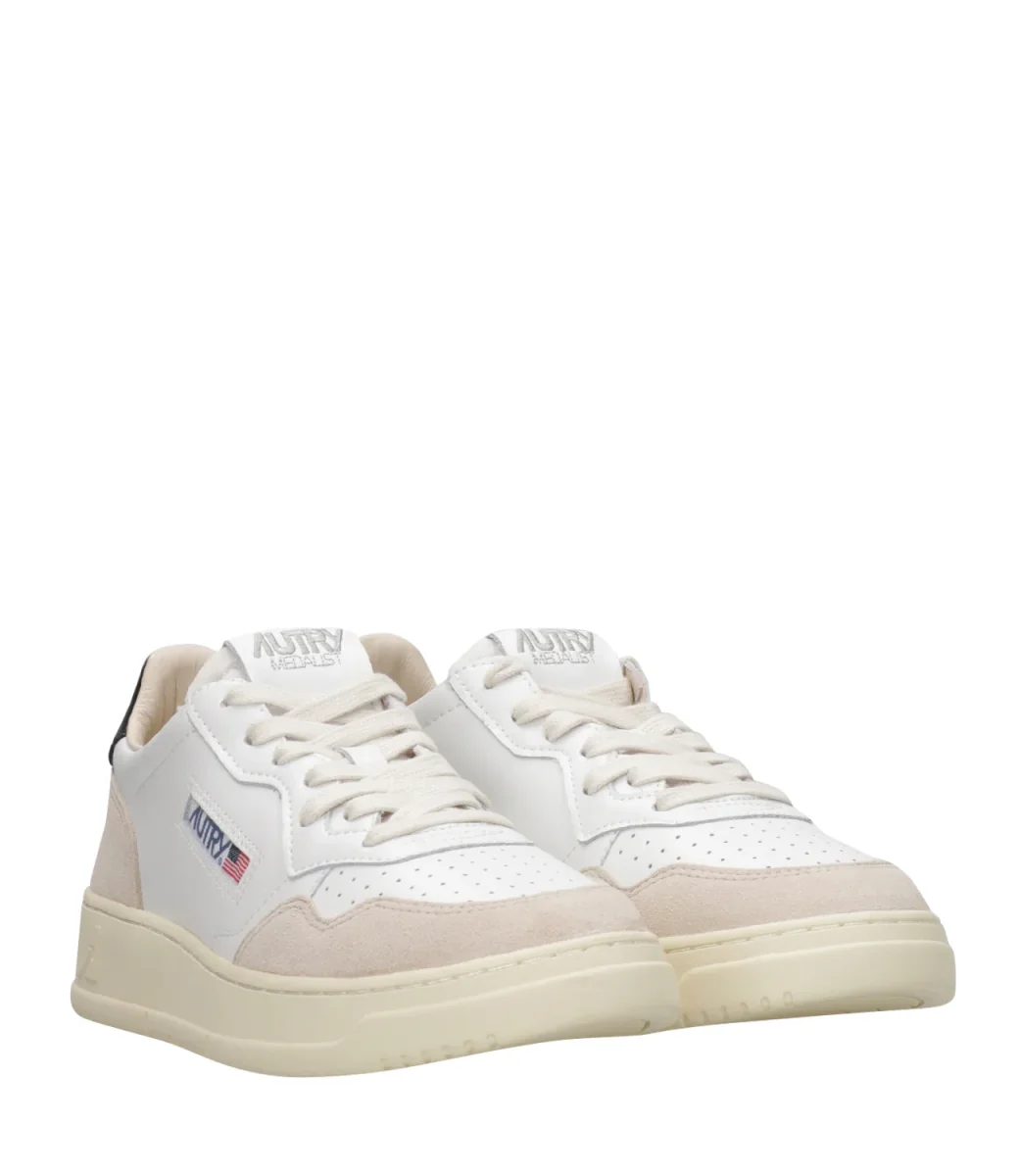Sneakers Autry Medalist Low Man. Modello vintage anni ’80 in pelle con punta tonda traforata. Toppa posteriore alla caviglia con logo Autry.