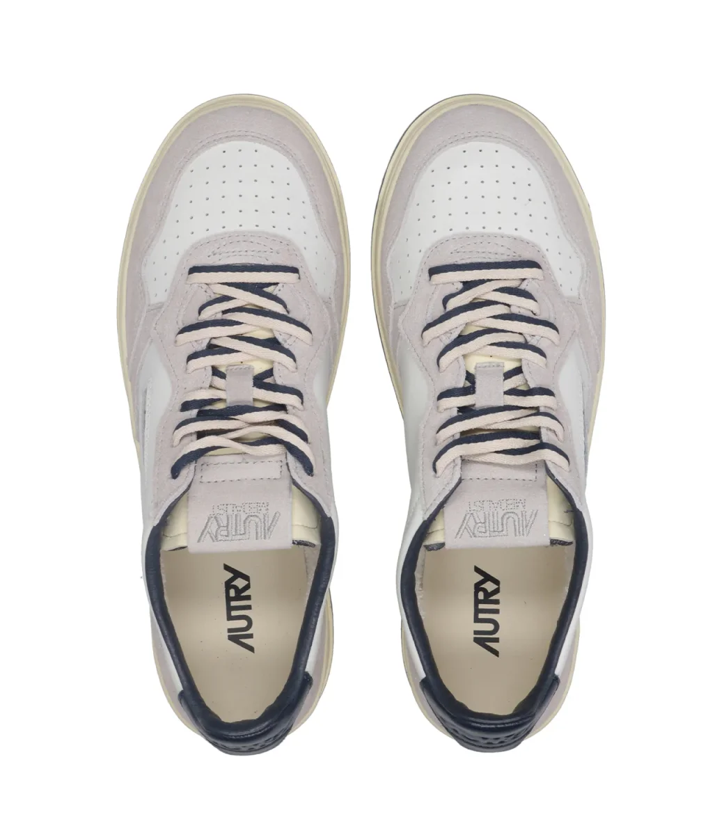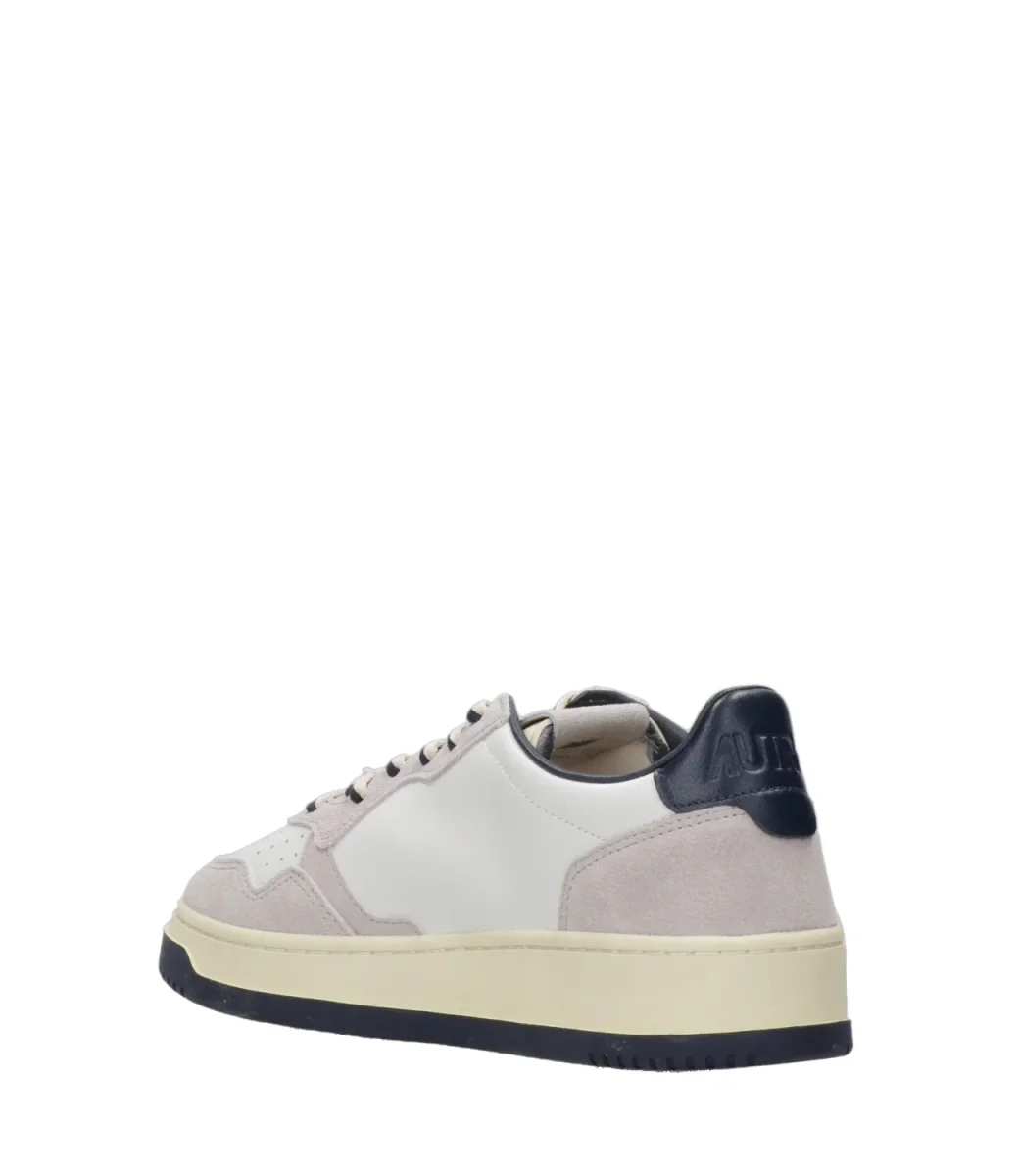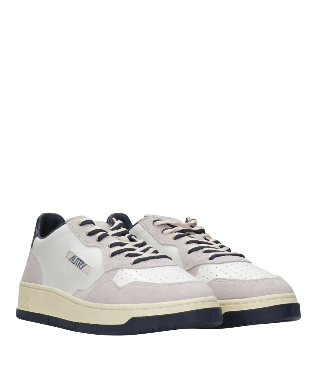 Sneakers Autry Medalist Low Man bassa. Modello vintage anni 80, in pelle con punta tonda traforata. Topponcino retro caviglia con logo Autry.