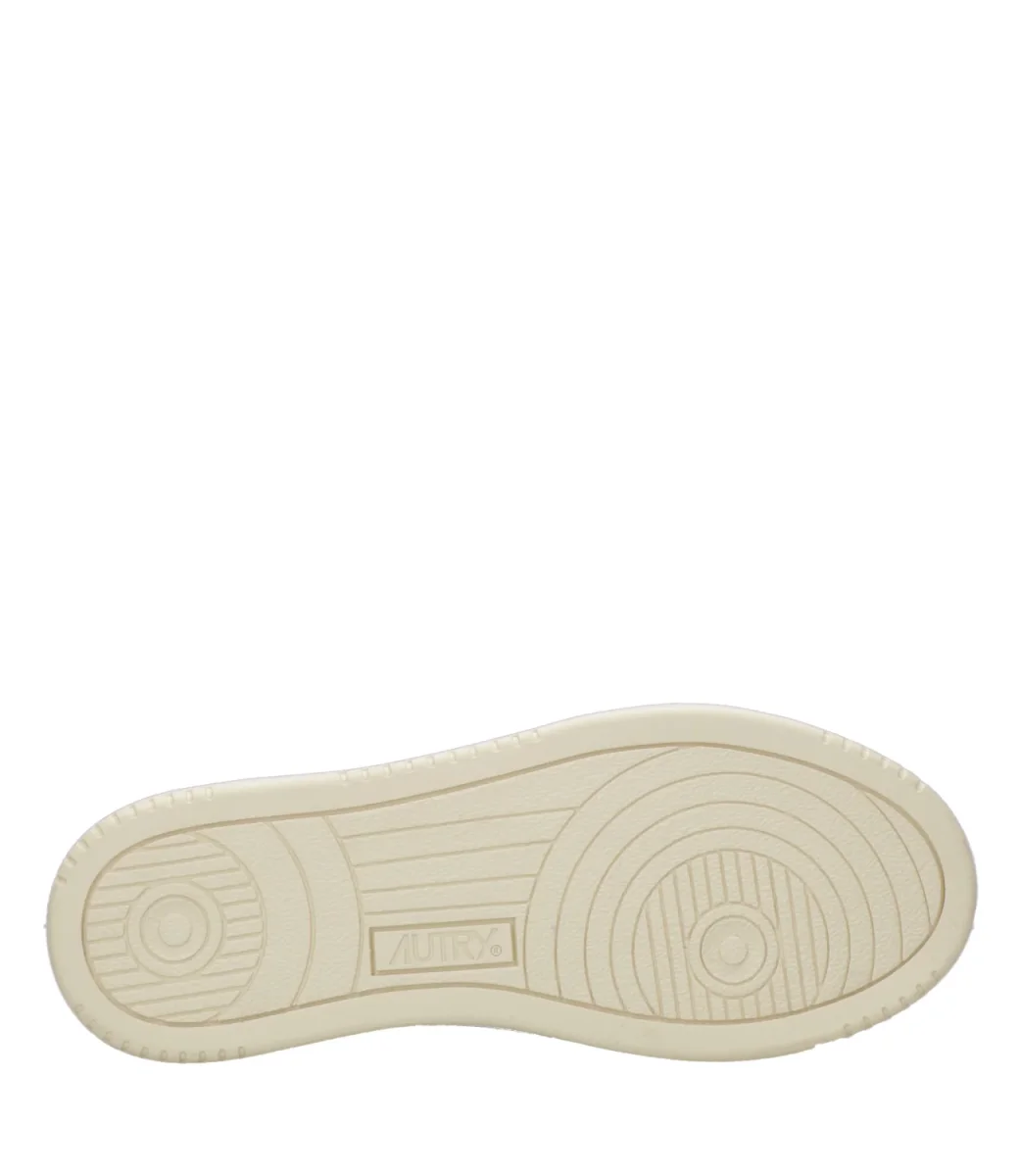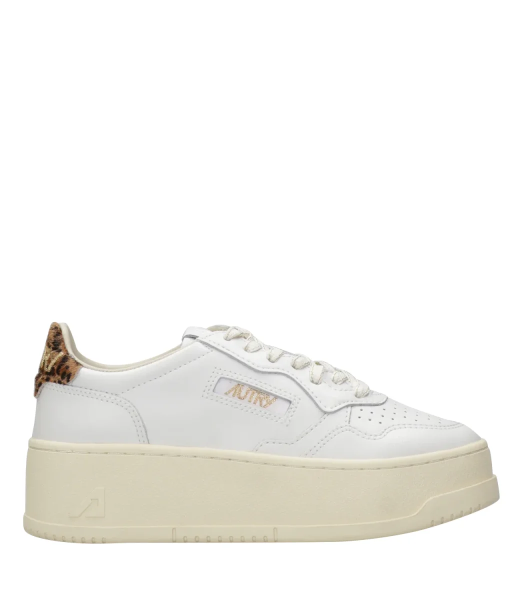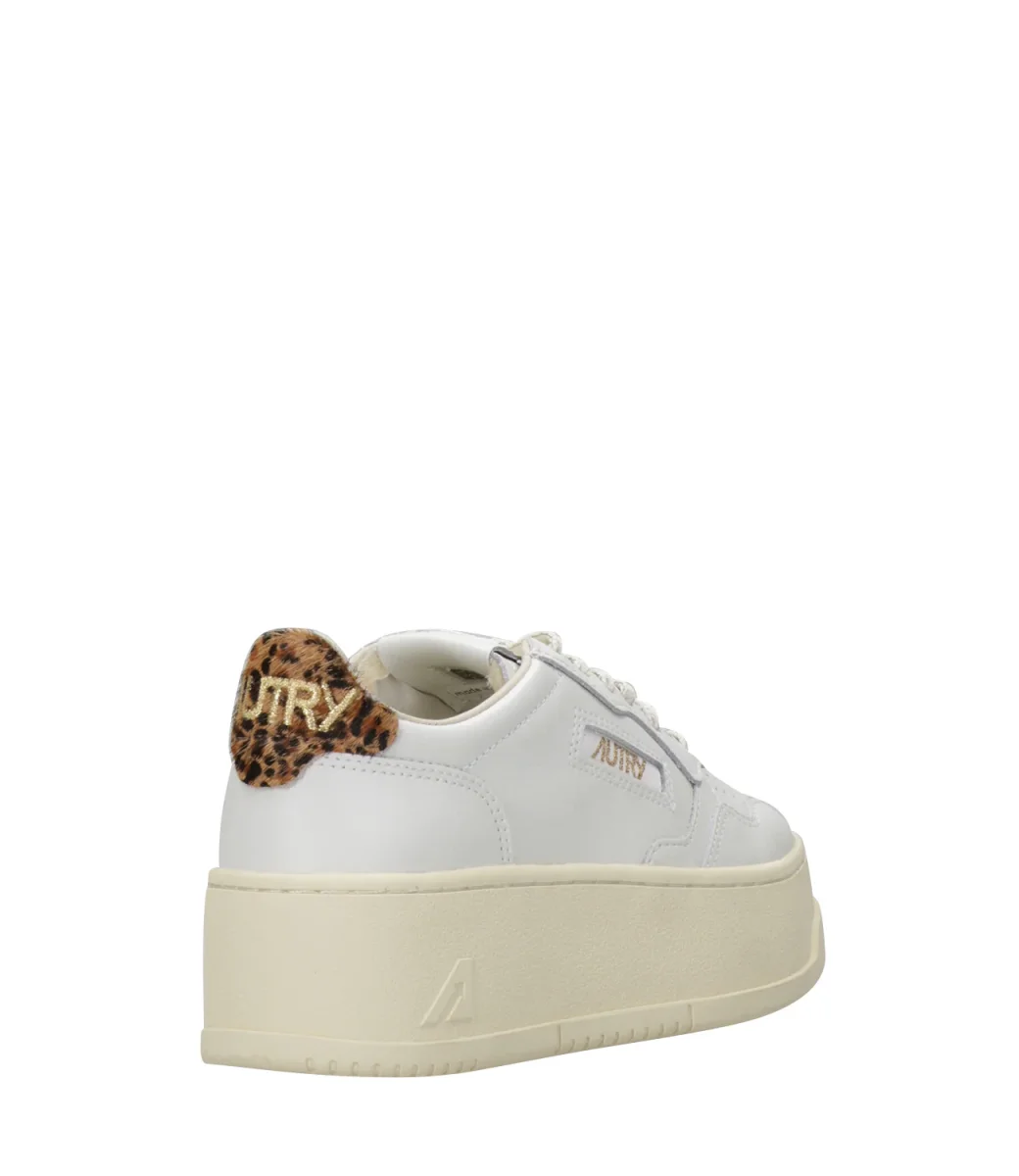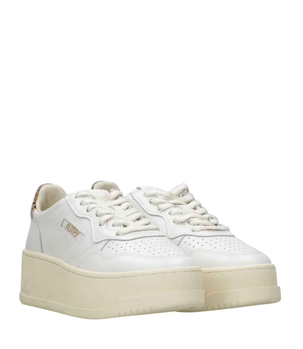 Sneakers Autry Platform Low Woman bassa in pelle con punta tonda traforata. Topponcino retro caviglia con logo Autry.