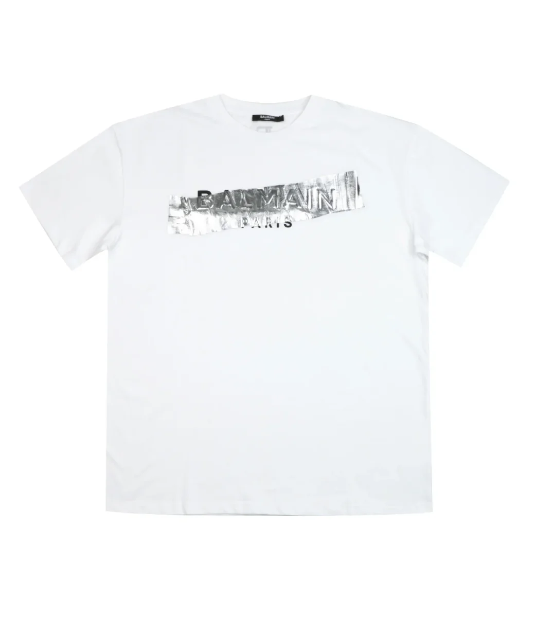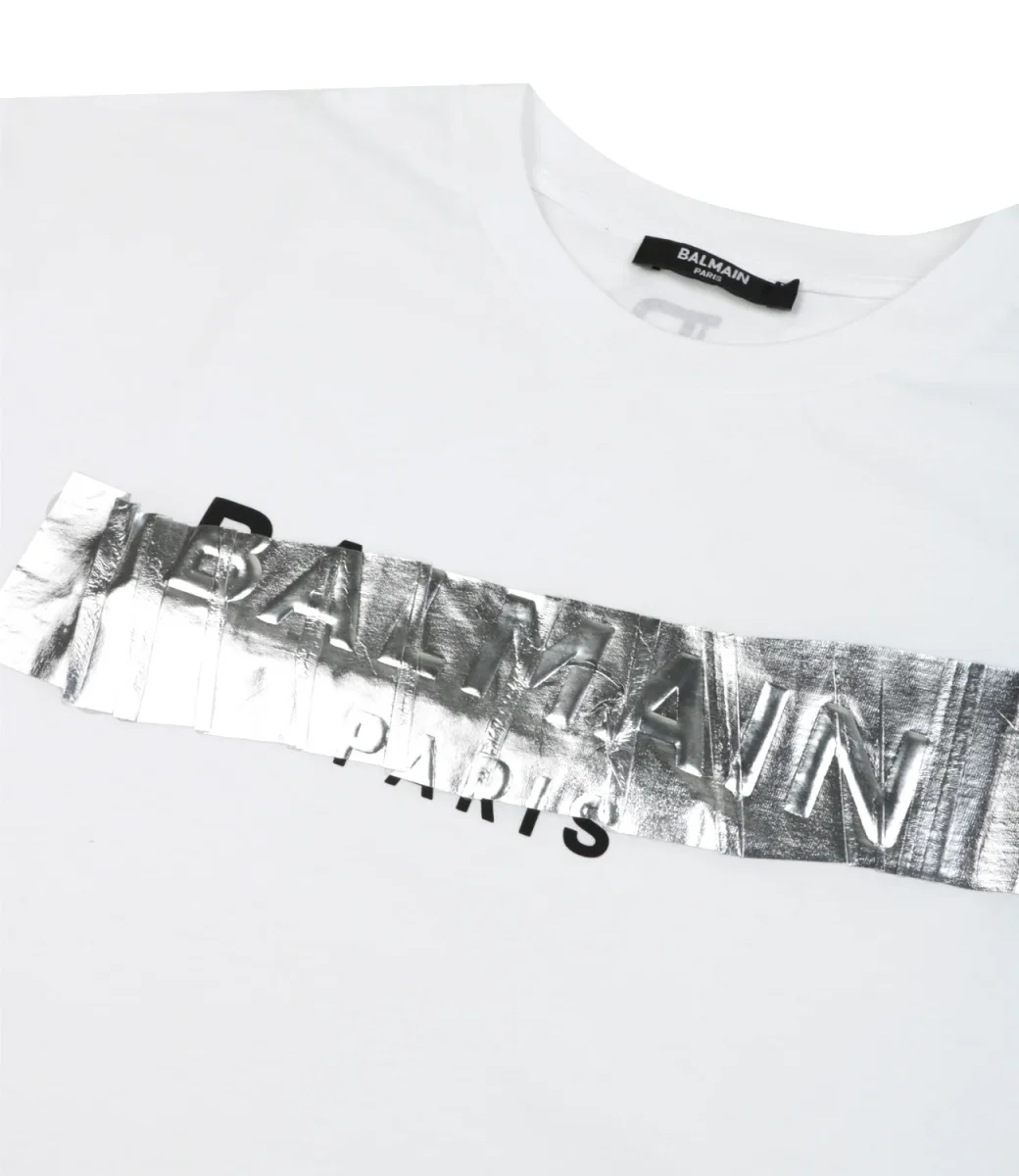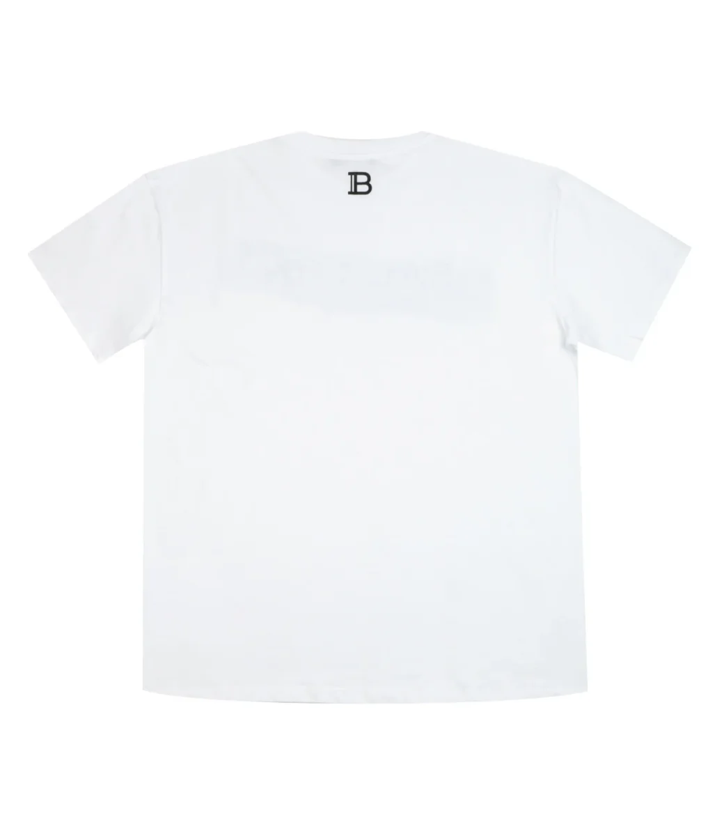 T-shirt di cotone bianca con stampa logo “Balmain” sulla parte frontale.