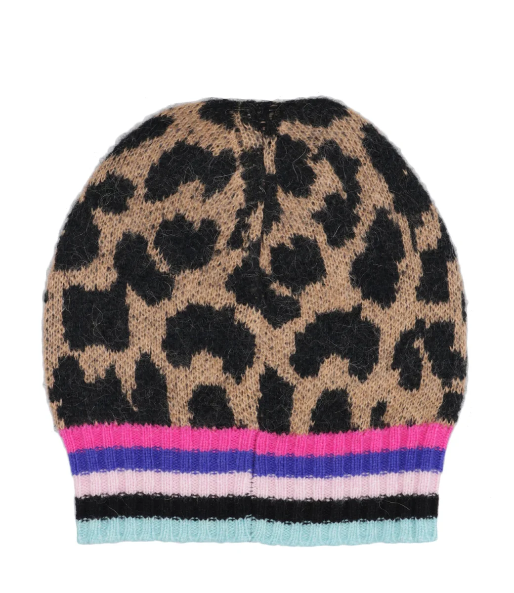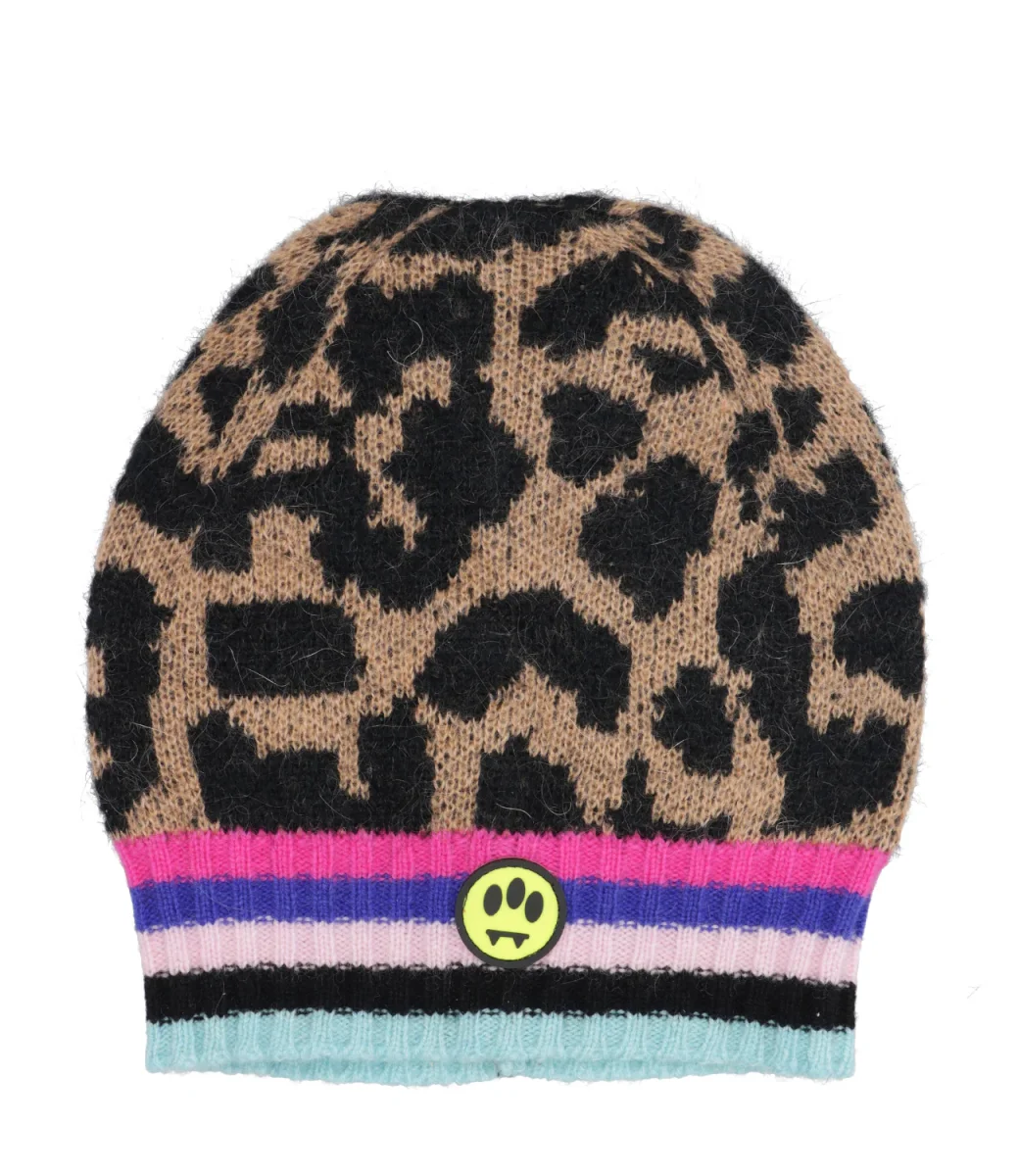 Berretto unisex Barrow in misto lana beige maculato con motivo a righe e patch logo sul davanti.