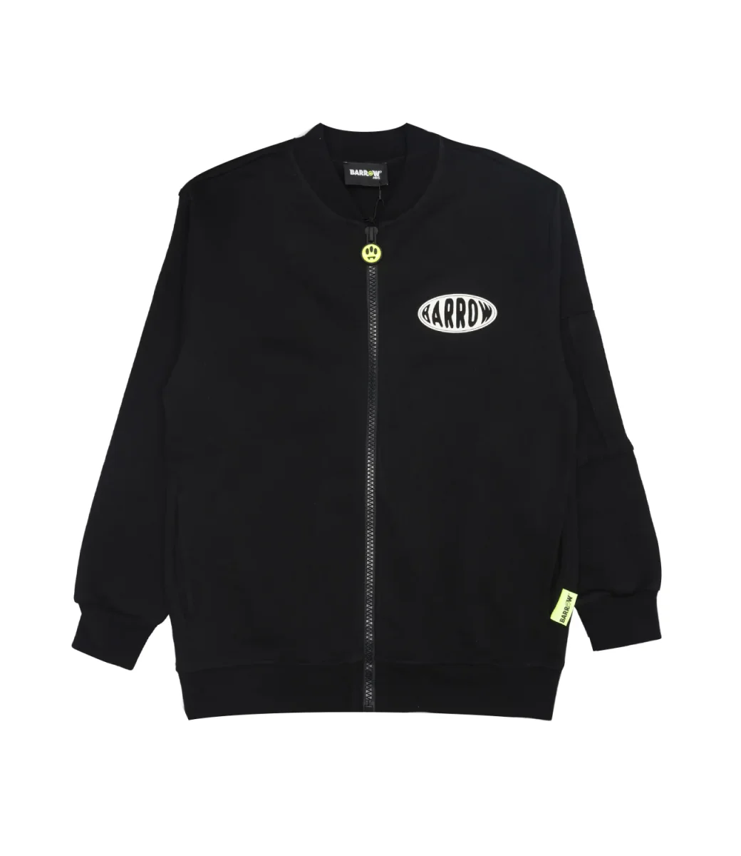 Bomber Barrow Kids in tessuto maglinato in misto cotone, con bordi a costine, zip e stampa Borrow sul petto lato sinistro e maxi sul retro nel carattere distintivo del brand.