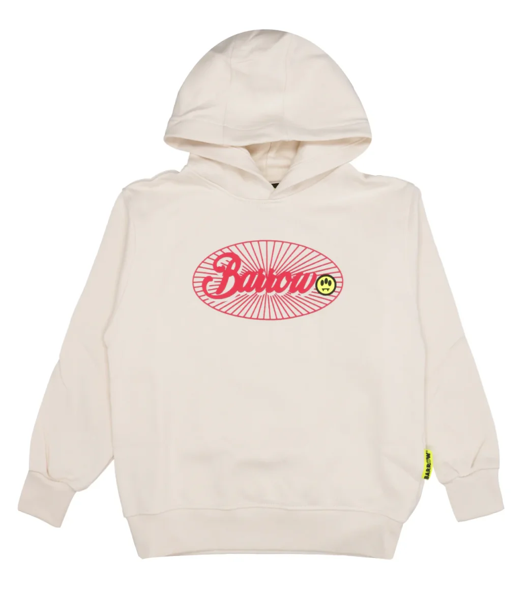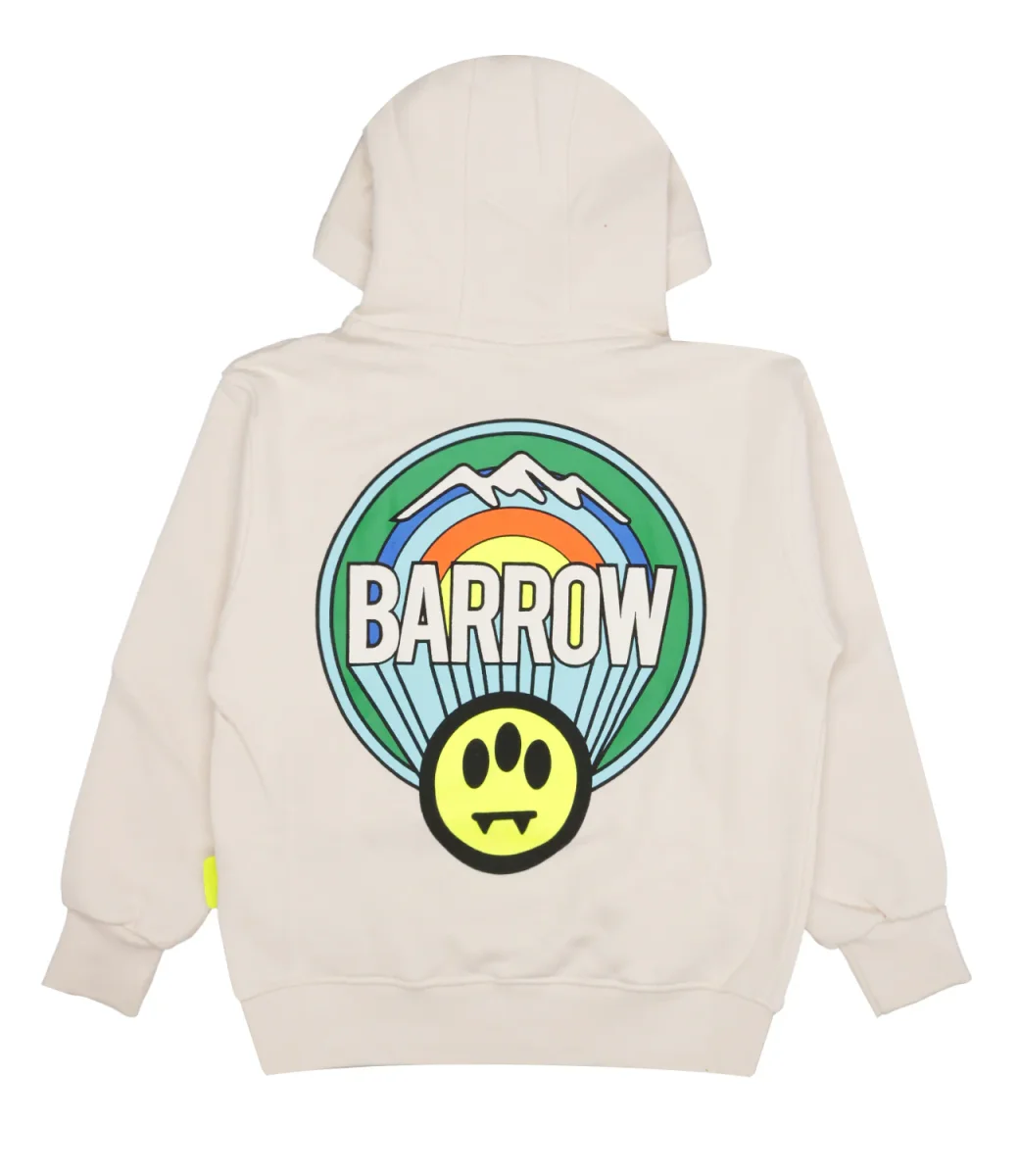 Felpa Barrow Kids in cotone felpato crema, con cappuccio, stampa sul fronte “Barrow”, maxi stampa sul retro. Targhetta reflective laterale. Vestibilità regolare