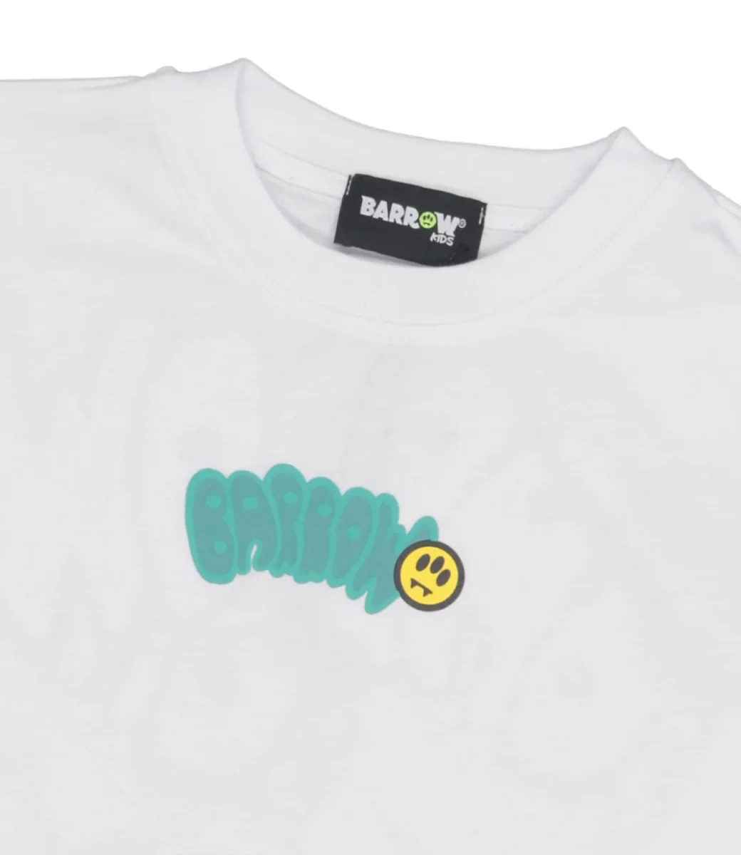 T-Shirt Barrow Kids in jersey di cotone con stampa Barrow Smile sul petto e maxi lettering sul retro. Linee pulite e tocco giocoso per piccoli amanti di sport e streetwear.