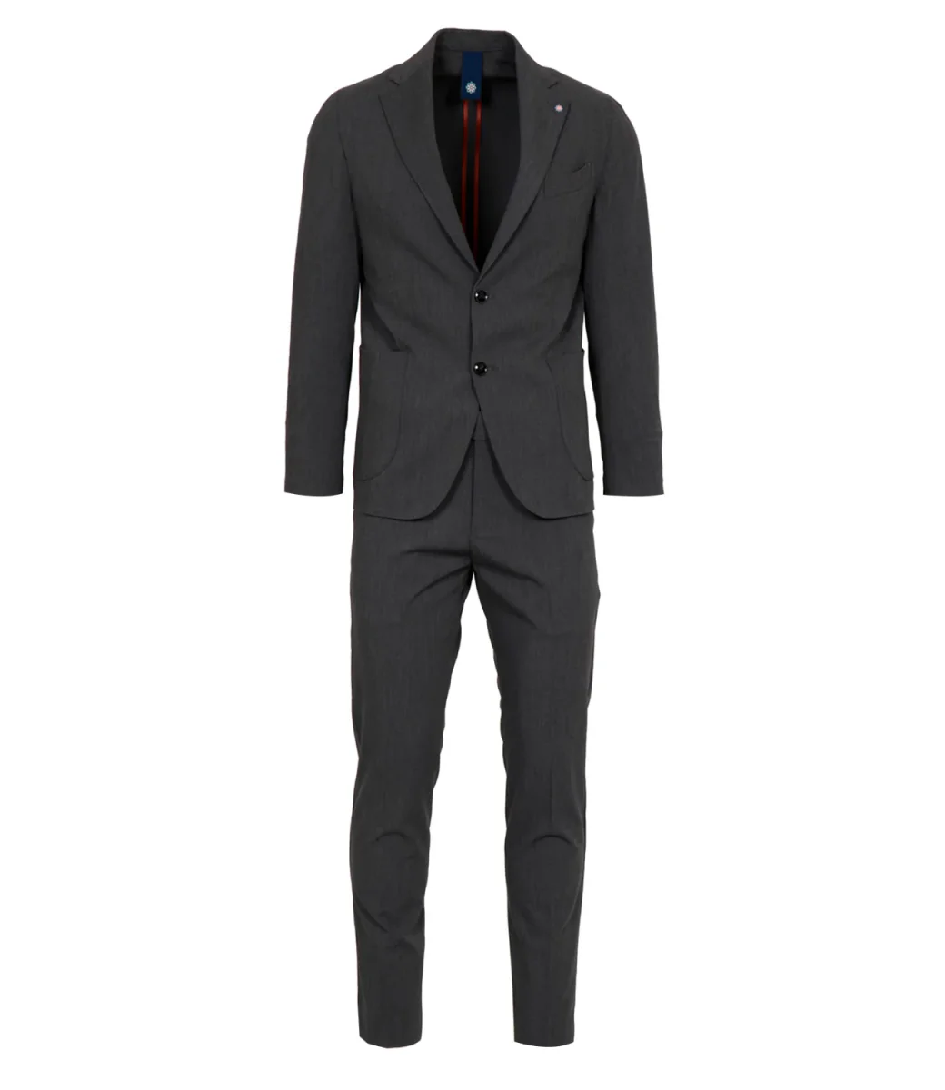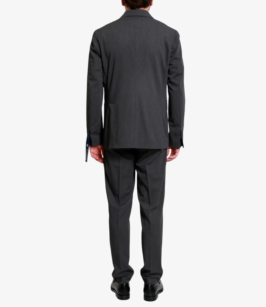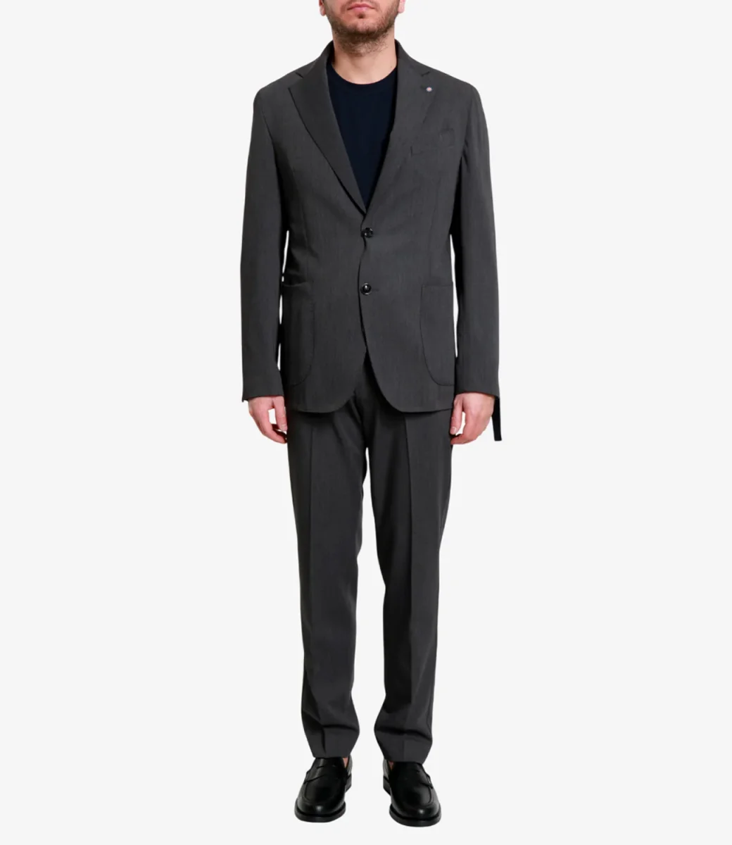 Abito Bharnaba Philosophy Kobe in tessuto leggero con elastene: giacca monopetto con revers a lancia, bottoni in tono, tasche applicate e impunture sui profili. Pantalone vita regolare, tasche all’americana, piega stirata, orlo dritto, vestibilità regolare.