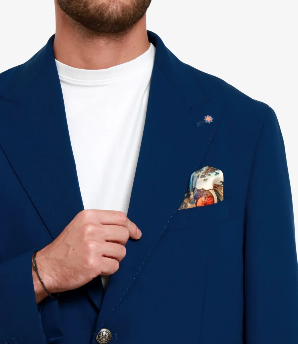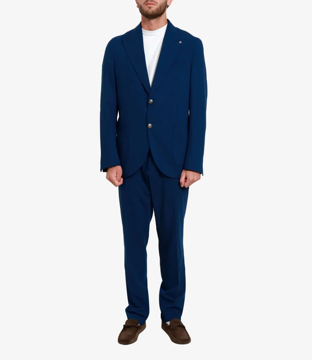 Abito Bharnaba Philosophy Loto. Design con giacca moopetto con bottoni bombati in metallo. Realizzato con tessuto dalla texture leggera e comfortevole nei movimenti.