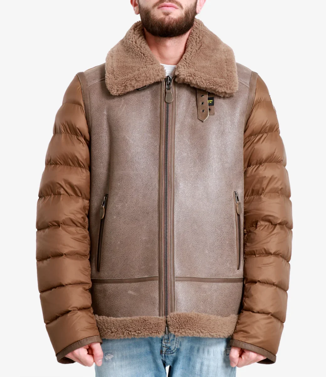 Piumino Blauer Fenner modello in montone e tessuto tecnico idrorepellente. Design vintage per vivere il passoto con l’innovazione dei moderni tessuti per ogni look ricercato.