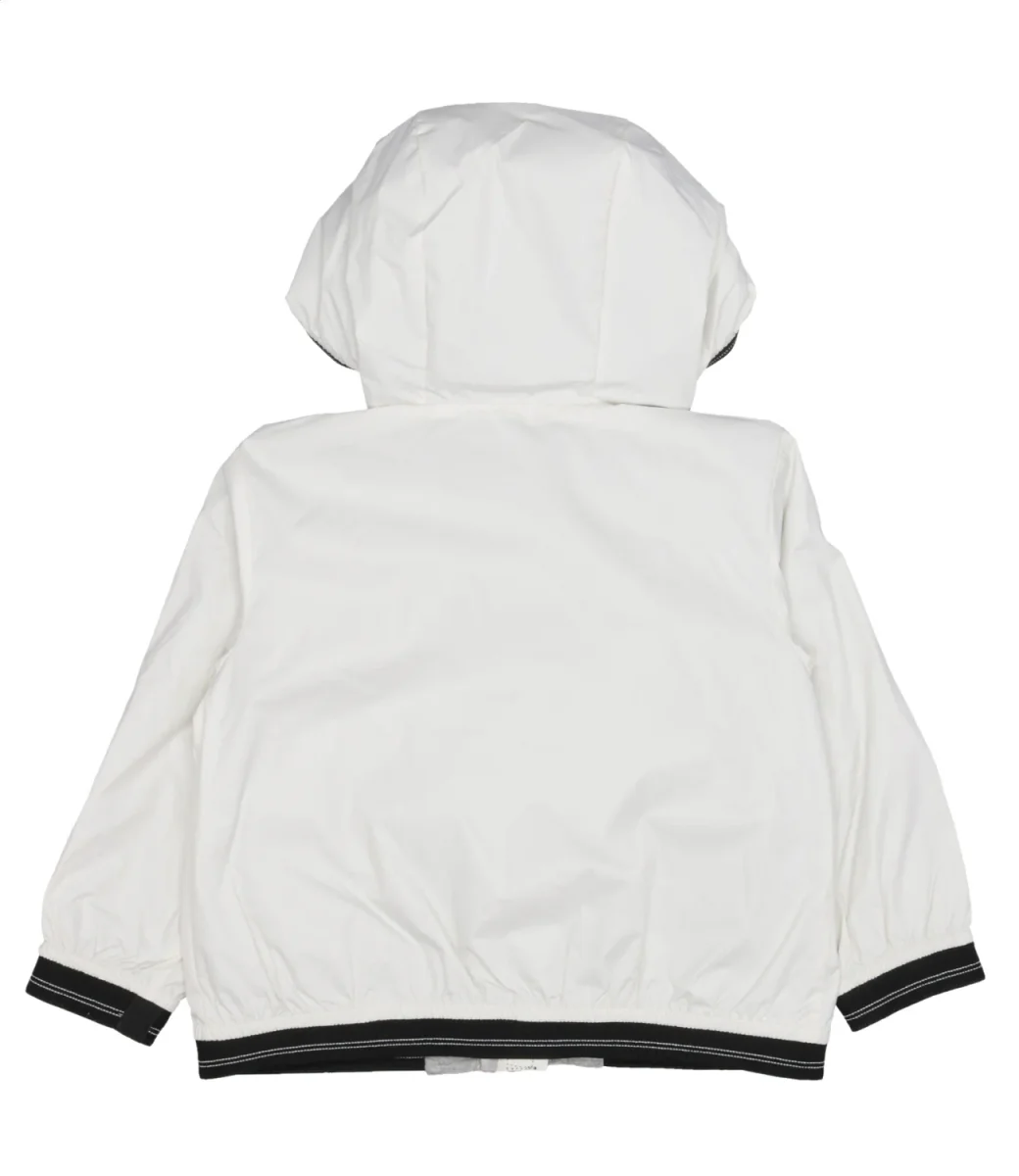 – Cappuccio fisso con coulisse e bordo in tessuto