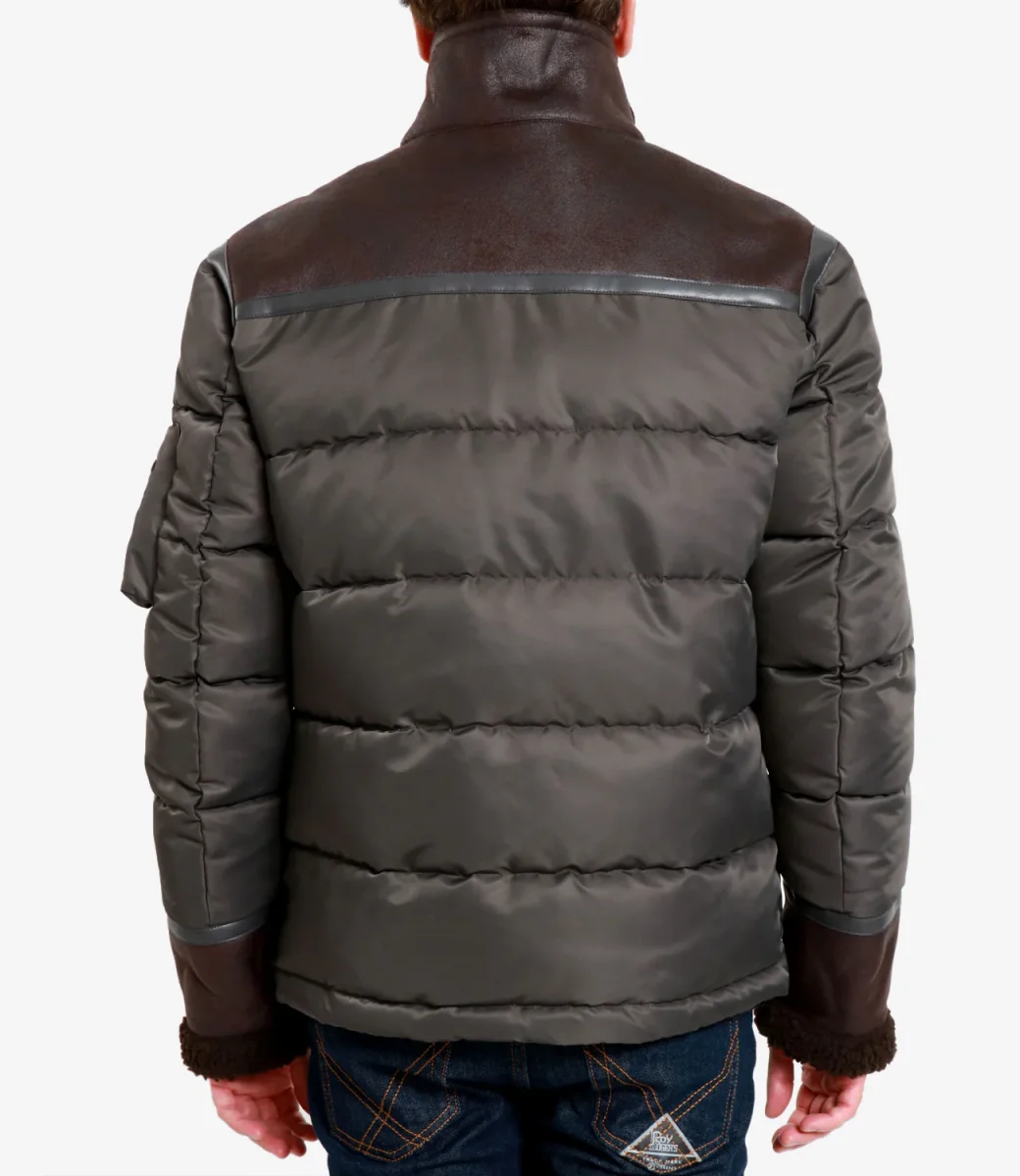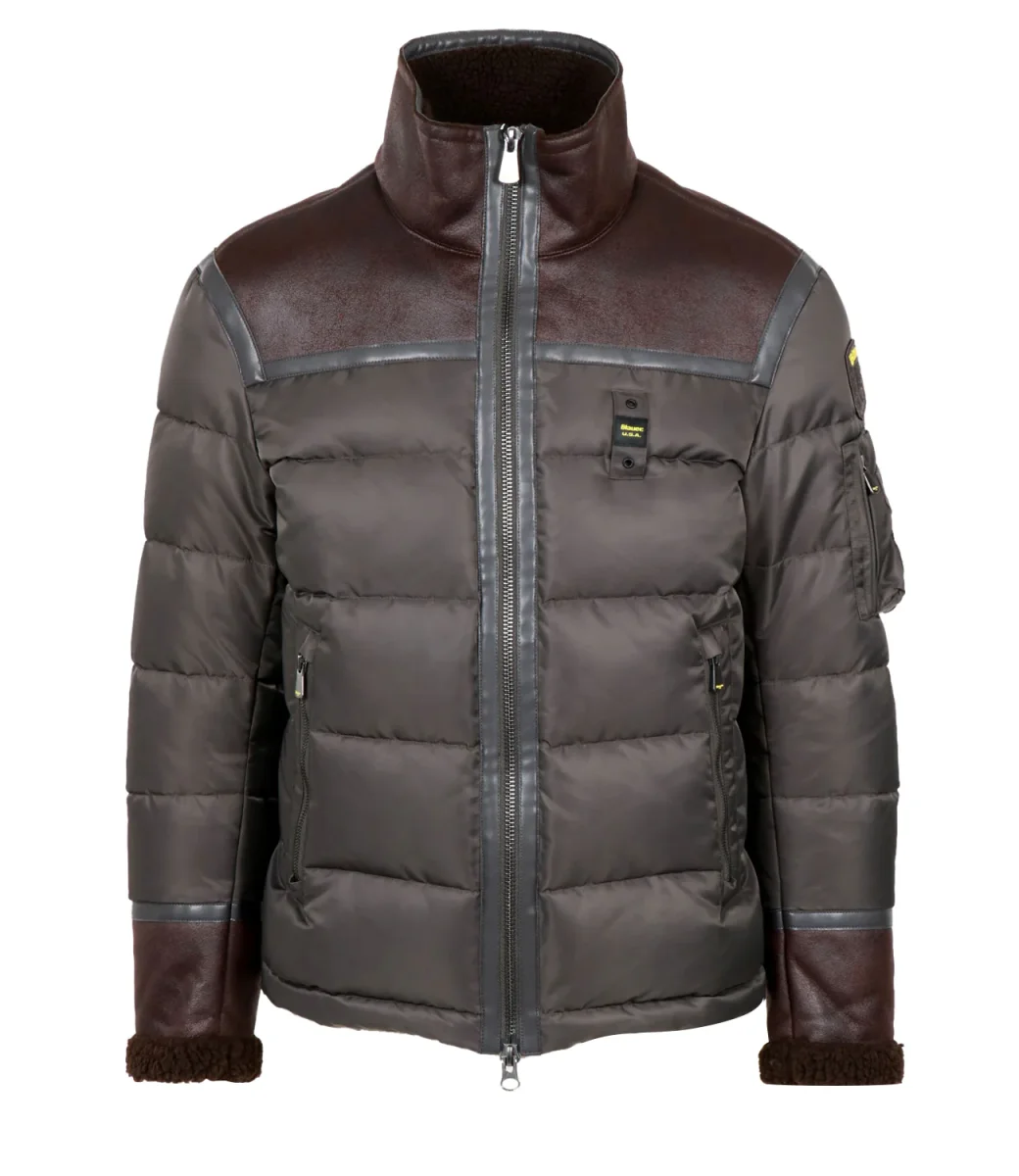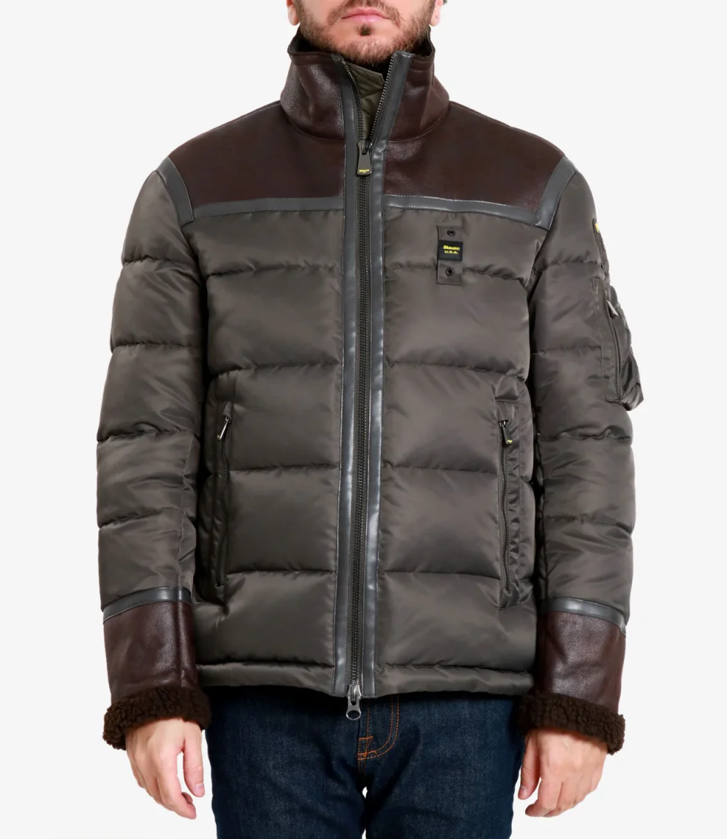 Piumino Blauer Organ realizzato in doppio tessuto, tecnico in motivo trapuntato in orizzontale e strutturato in montone ecologico sulla parte superiore delle spalle. Design che completa look casual o classici.