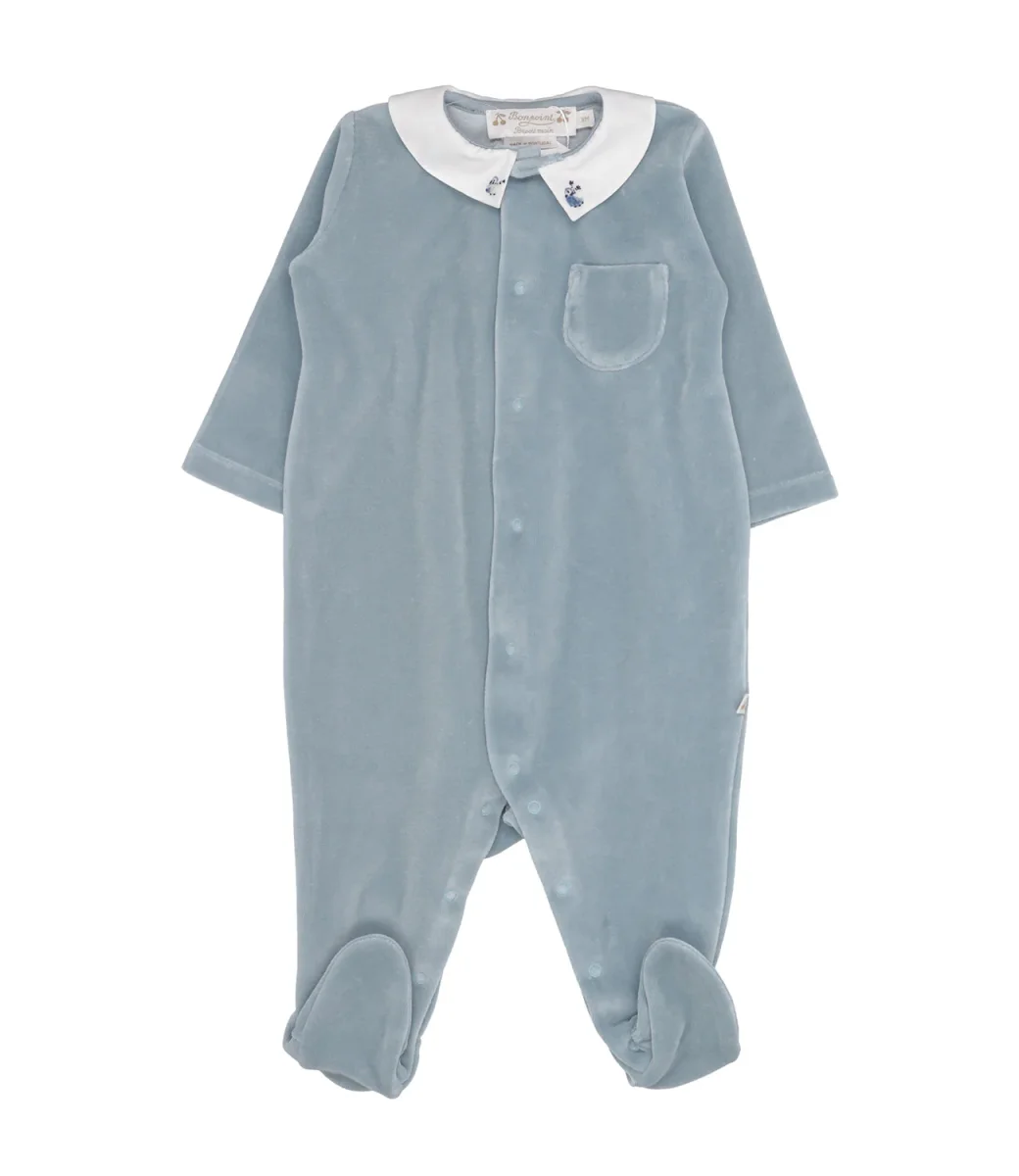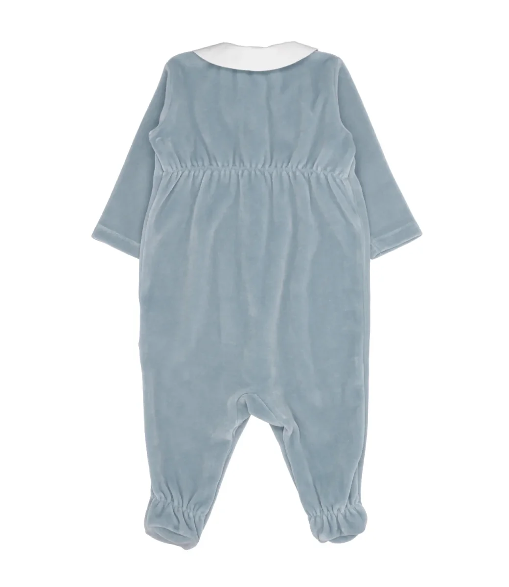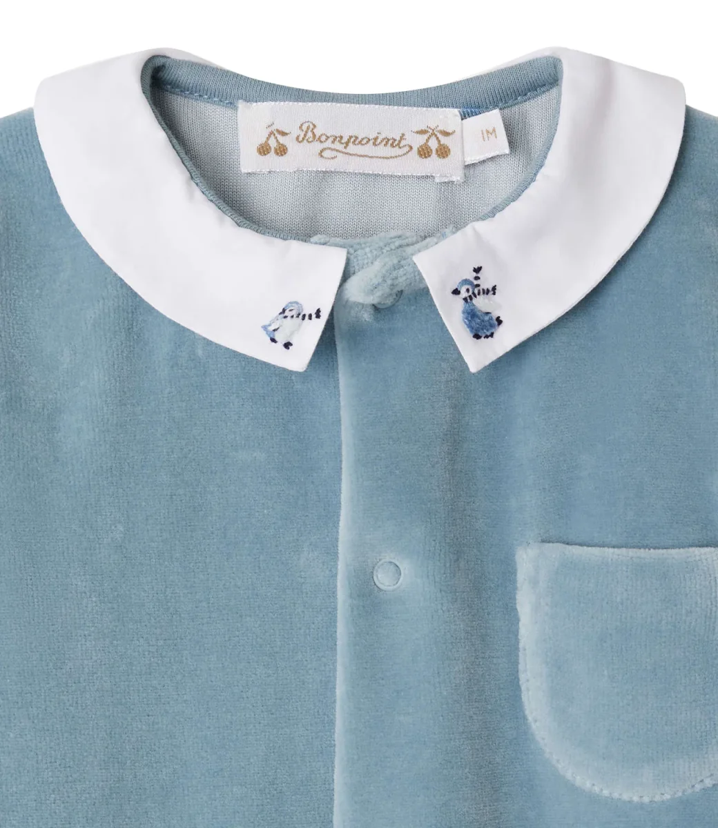 Pigiama Bonpoint Tilouan in caldo misto cotone biologico, vellutato al tatto. Impreziosito da un colletto decorato sulle punte con un simpatico ricamo realizzato a mano con tema pinguini.