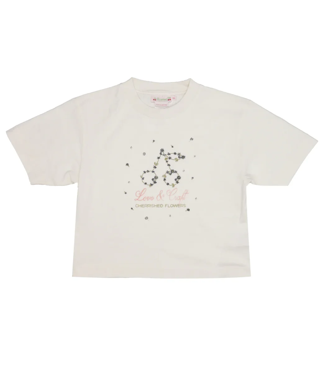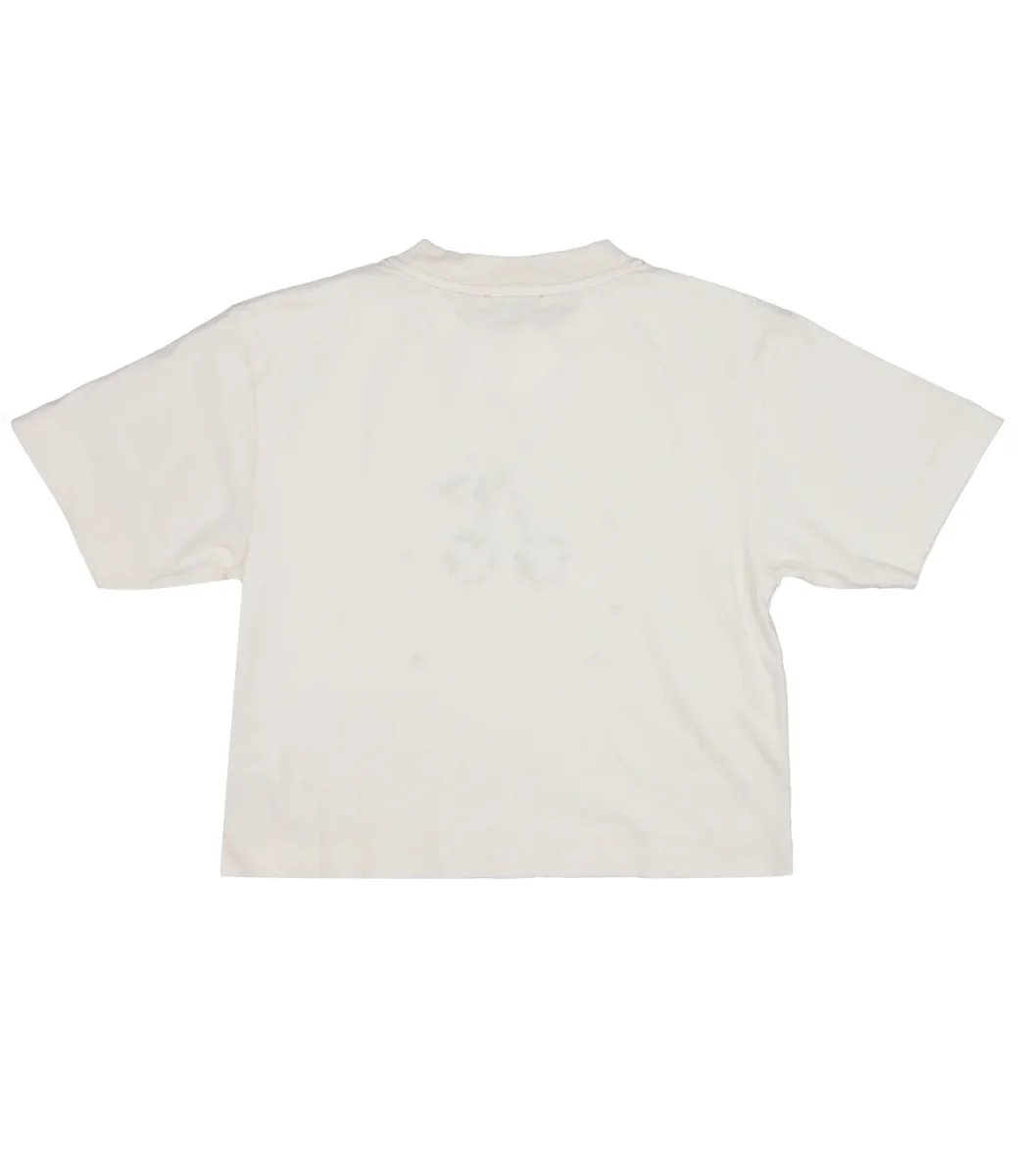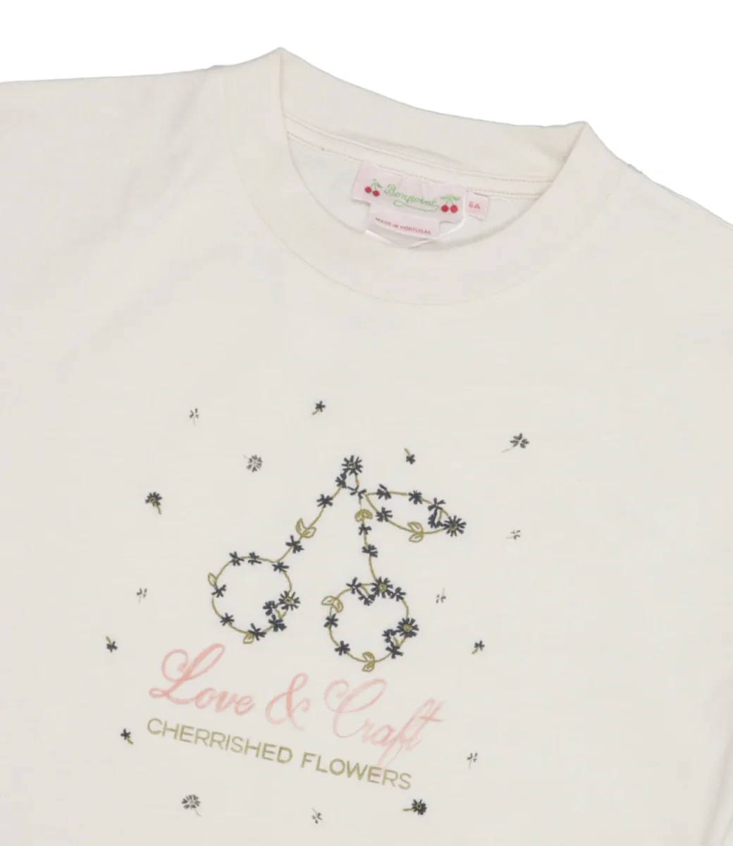 T-Shirt Bonpoint Lele realizzata in cotone biologico, design corto con girocollo, spalle scese, maniche corte, fondo dritto, Stampa con ciliegie sul davanti.